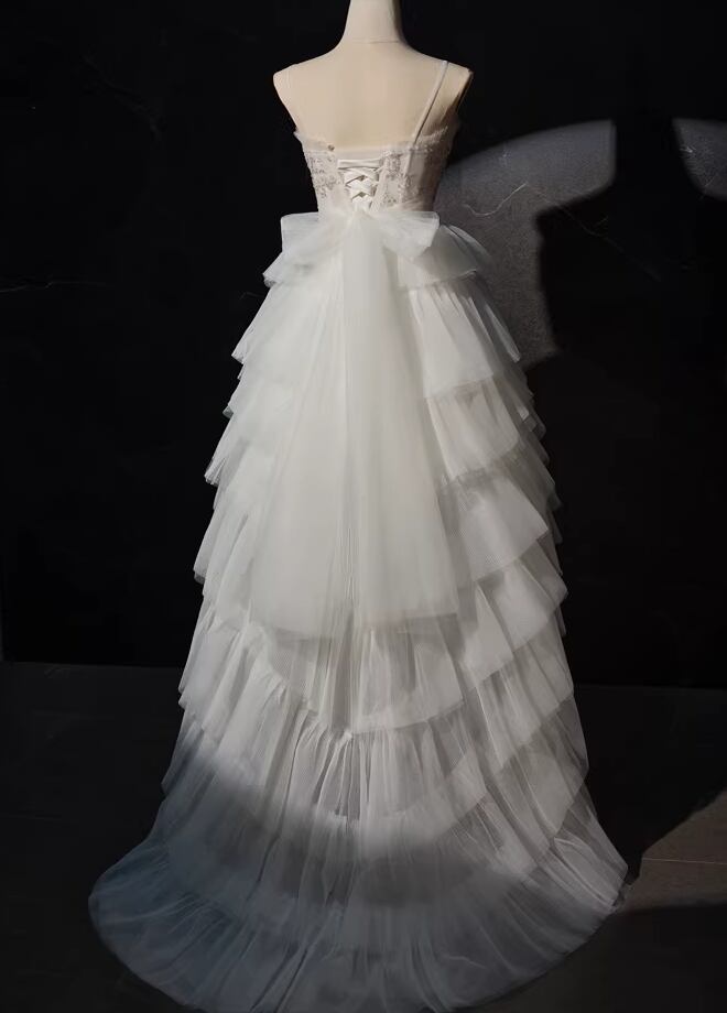 ウェディングドレス キャミソール キラキラスパンコール フィッシュテール プリーツスカート 豪華なバックリボン 披露宴