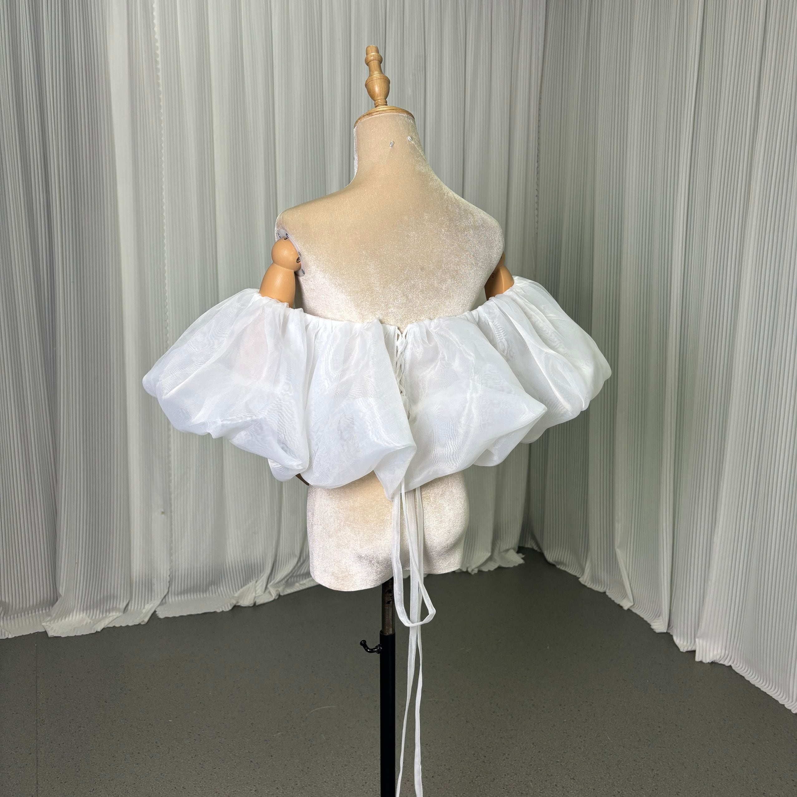 オフショルダー オフホワイト 上質オーガンジー 編み上げ ふわふわ エレガント 結婚式/披露宴