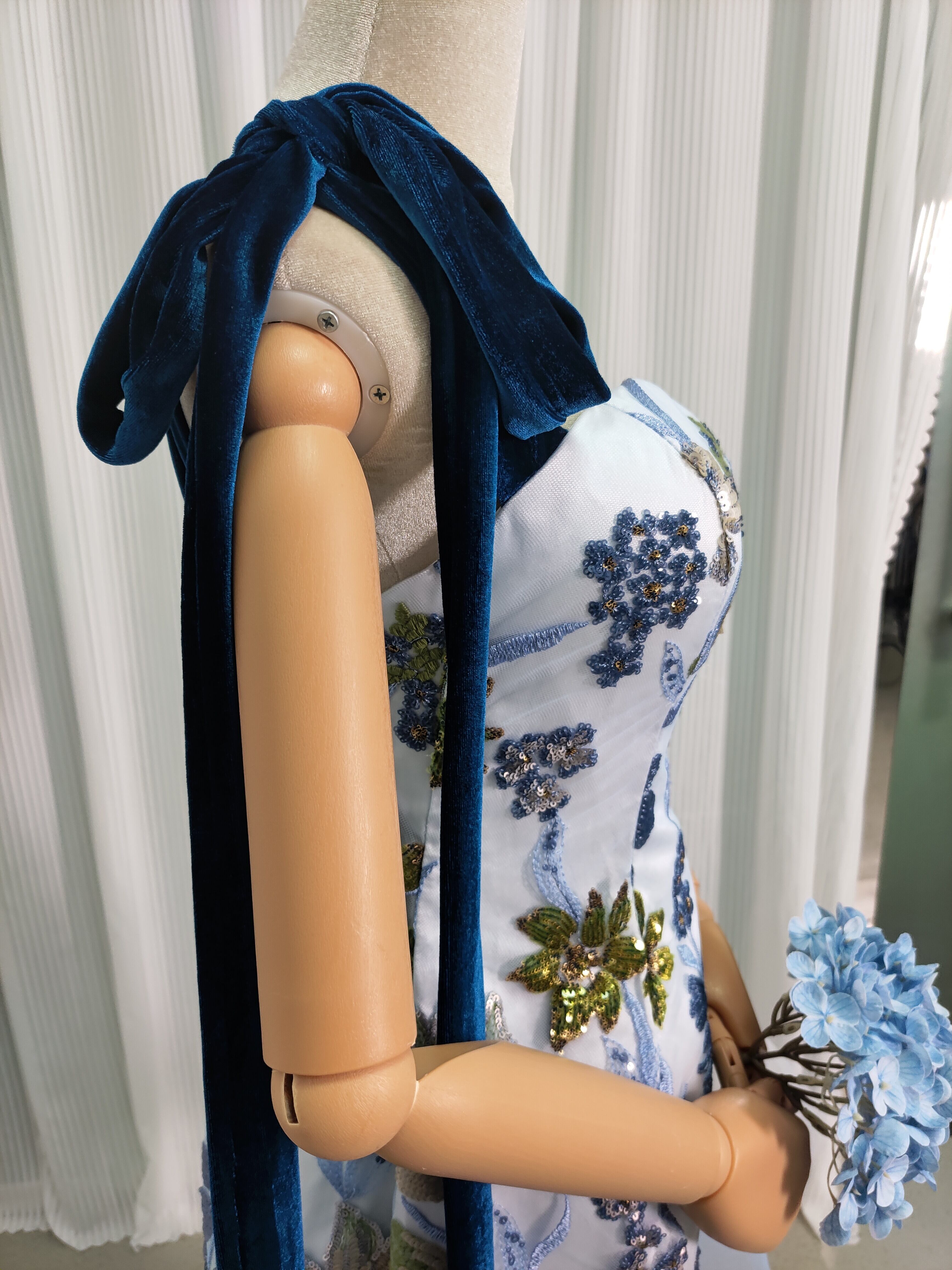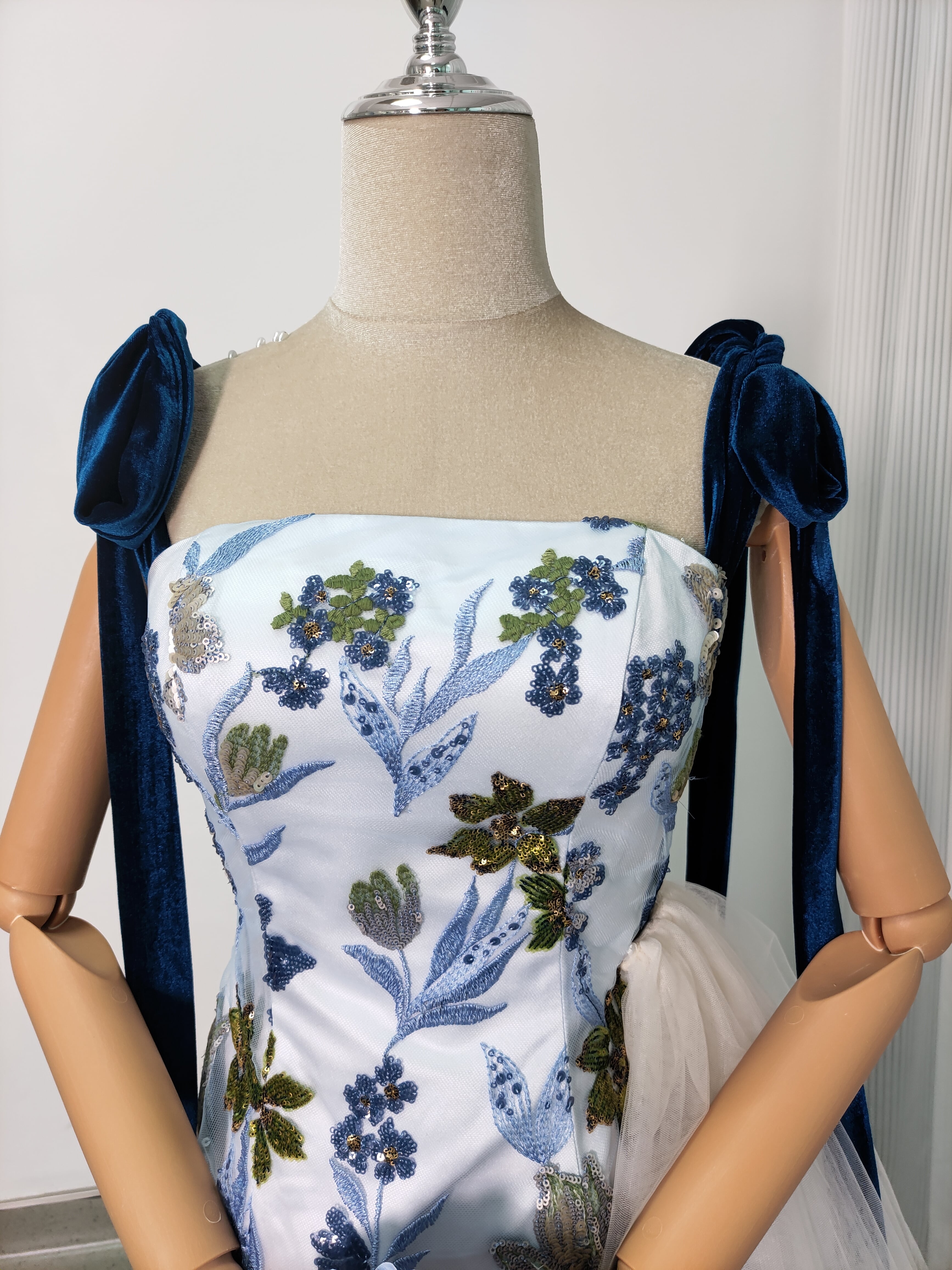 クラシカル パーティードレス 花柄のモチーフ刺繍が美しく キャミソール 背中見せ デザイン感 2次会 前撮り
