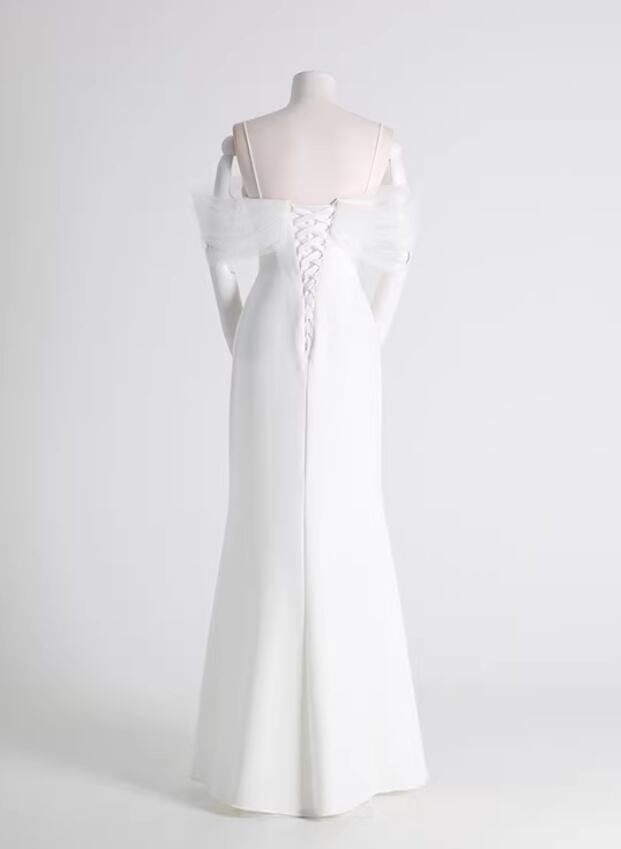 ウェディングドレス キャミソール オフショルダー ロング 優雅なシルエット 編み上げ ロング 二次会