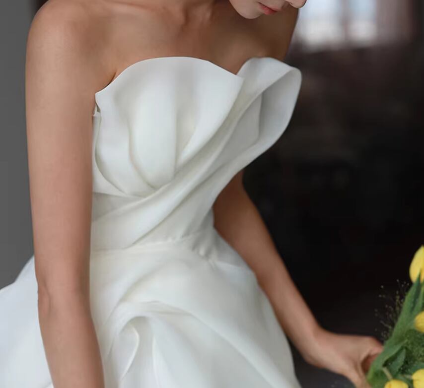 高品質!ウェディングドレス ベアトップ ハンドドレープ デザイン感 優雅なシルエット 編み上げ 結婚式