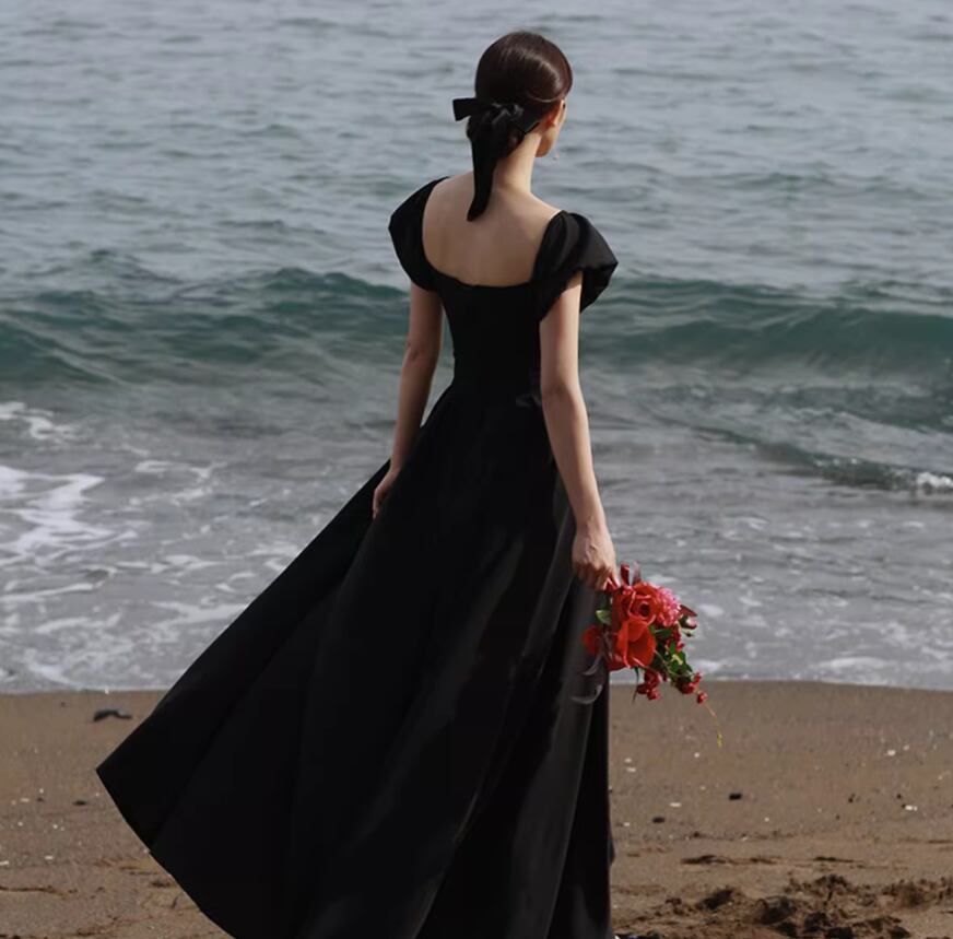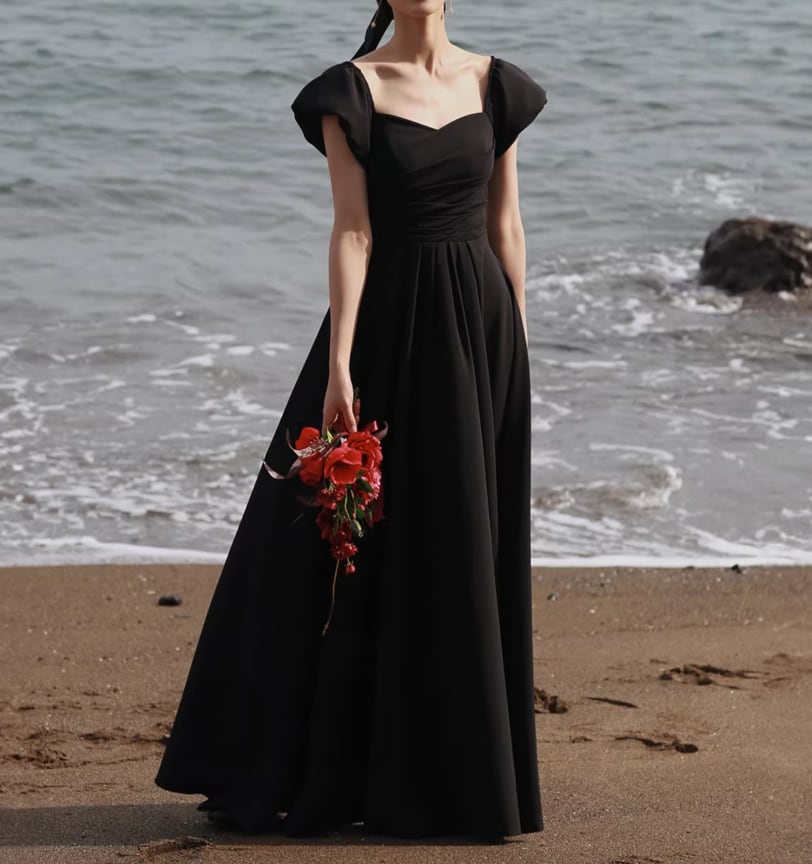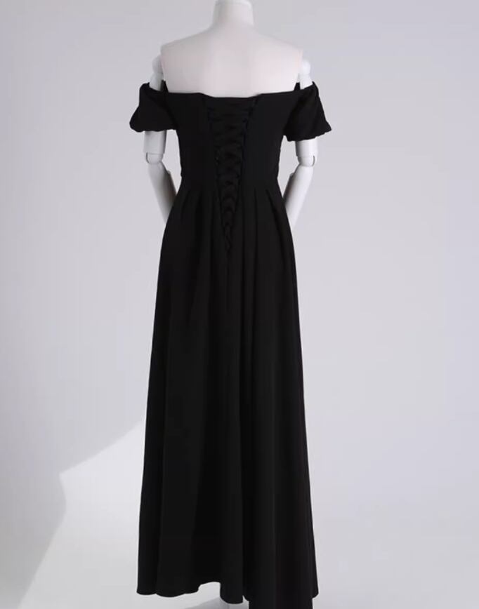 パーティードレス ブラック オフショルダー Aライン 揺らめく裾 大人っぽい 前撮り