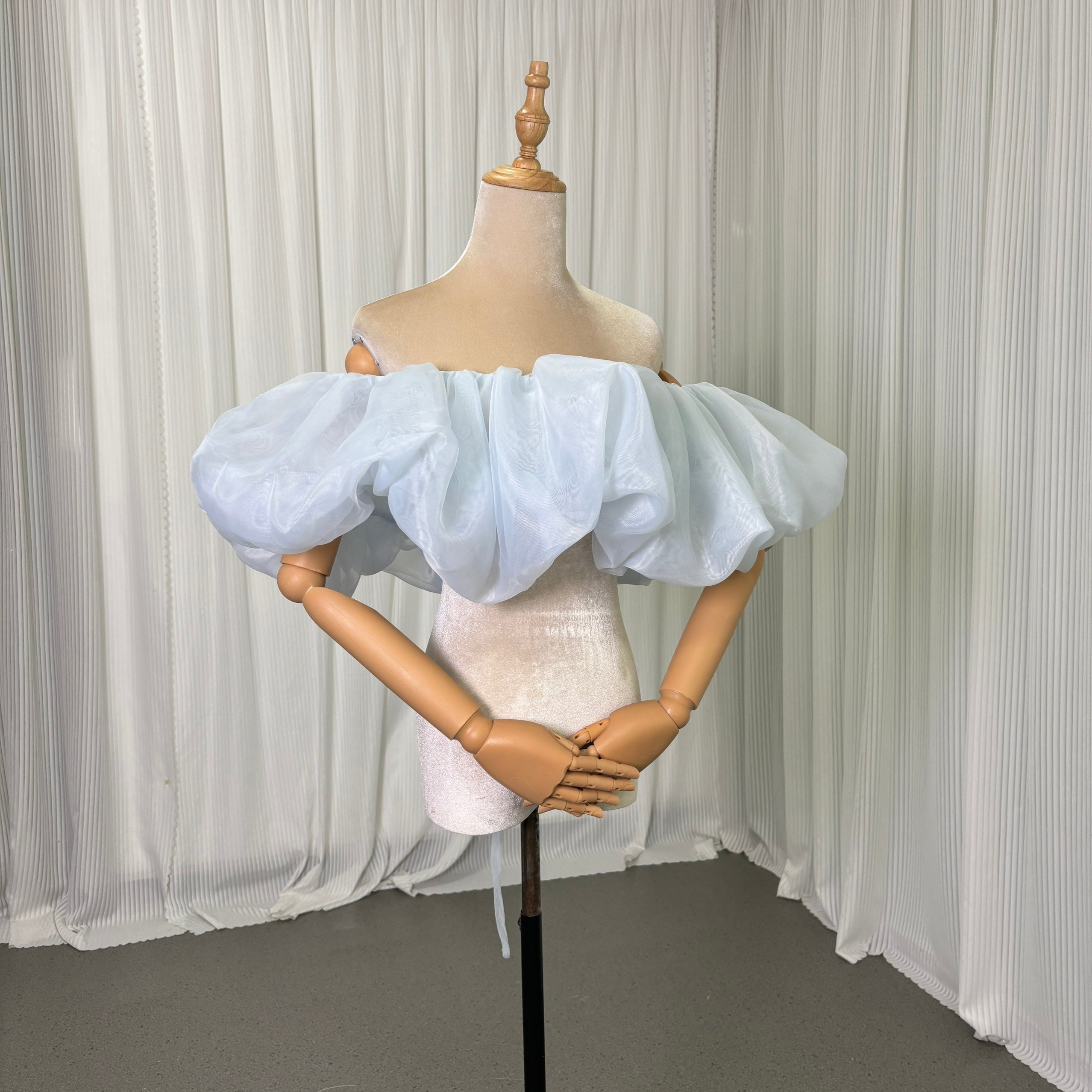 オフショルダー ライトブルー 上質オーガンジー 編み上げ ふわふわ エレガント 結婚式/披露宴
