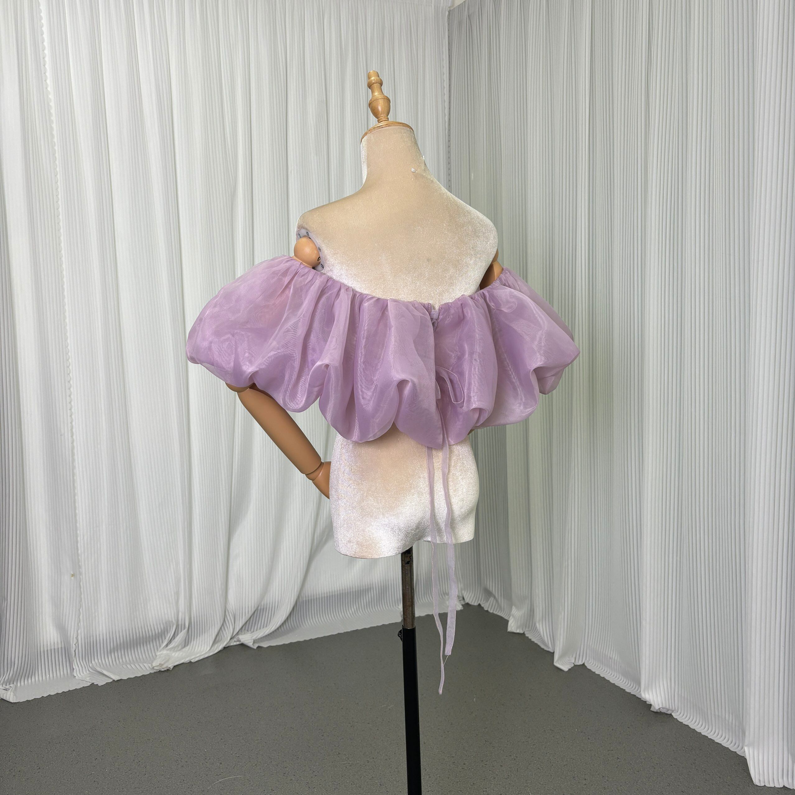 オフショルダー パープル 上質オーガンジー 編み上げ ふわふわ エレガント 結婚式/披露宴