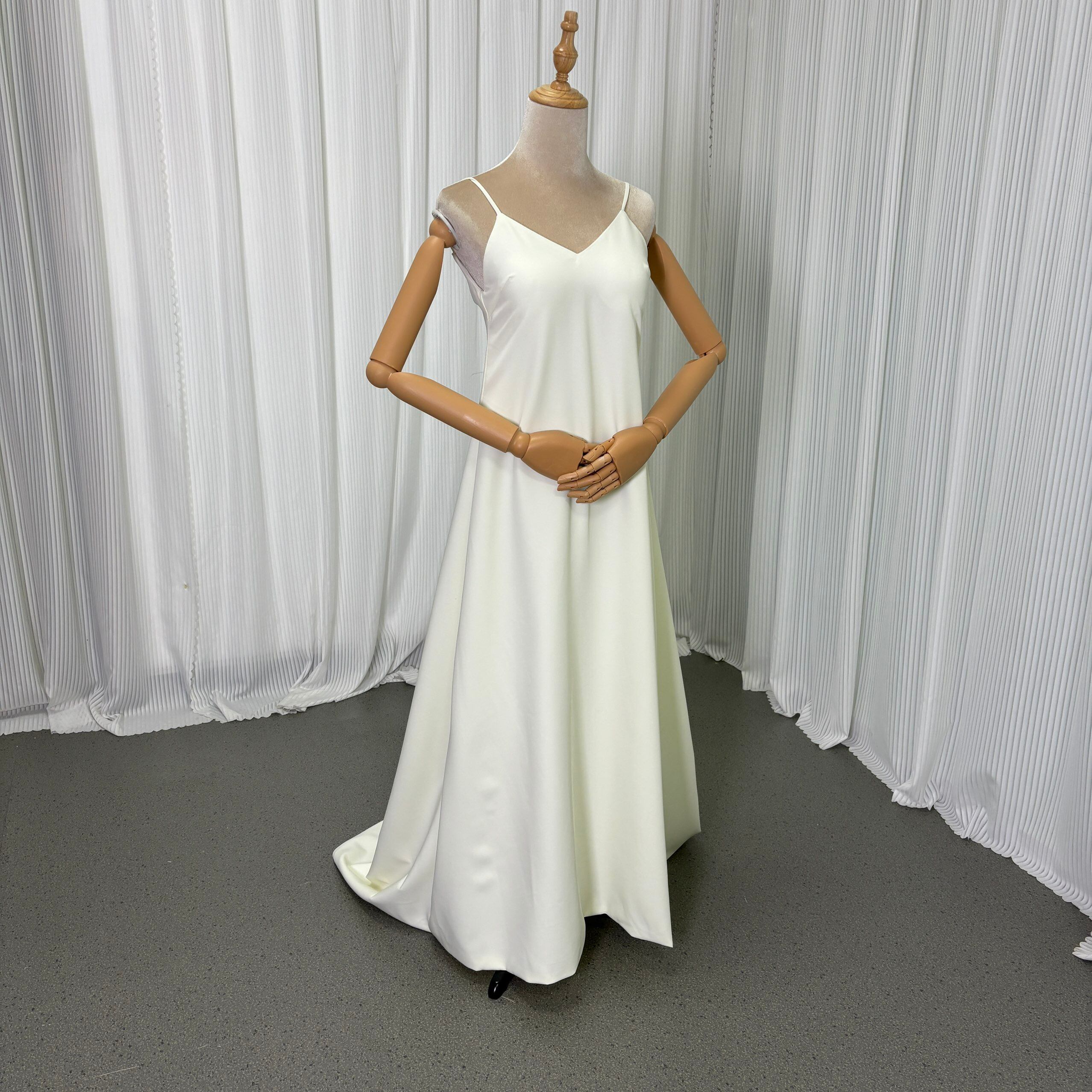 キャミソール パーティードレス アイボリー ミニトレーン Vネック ファスナー スレンダーライン 二次会