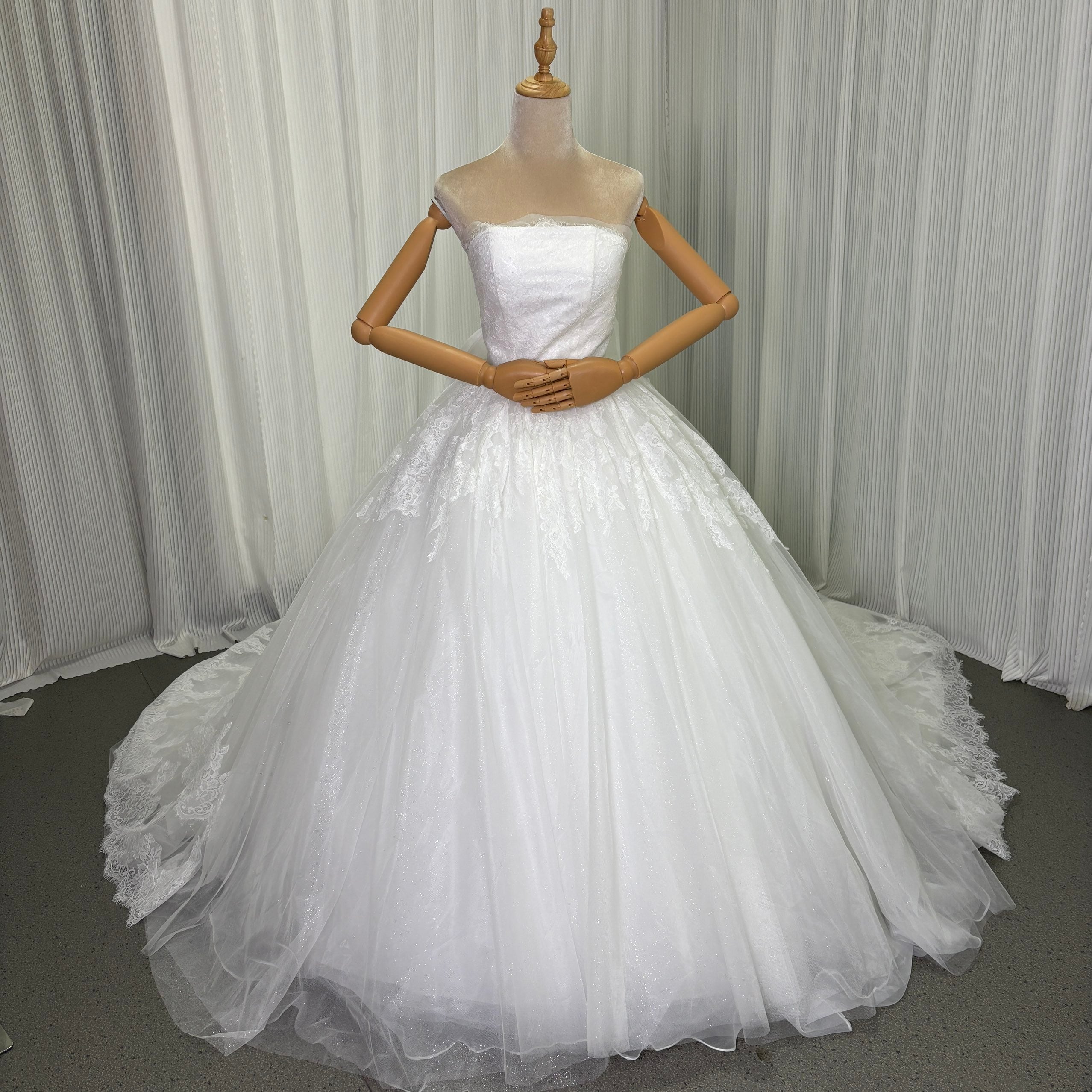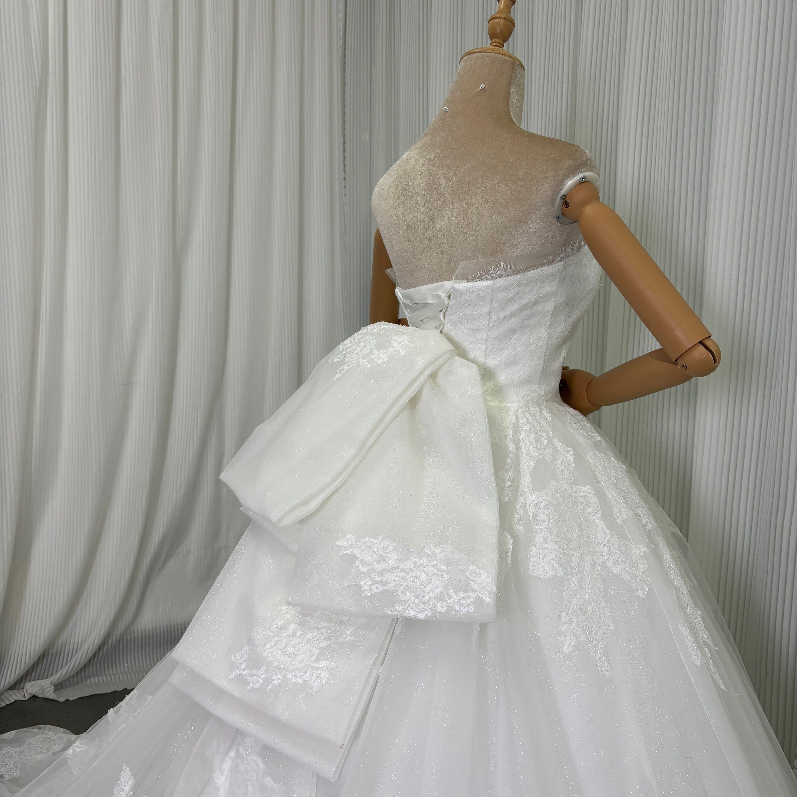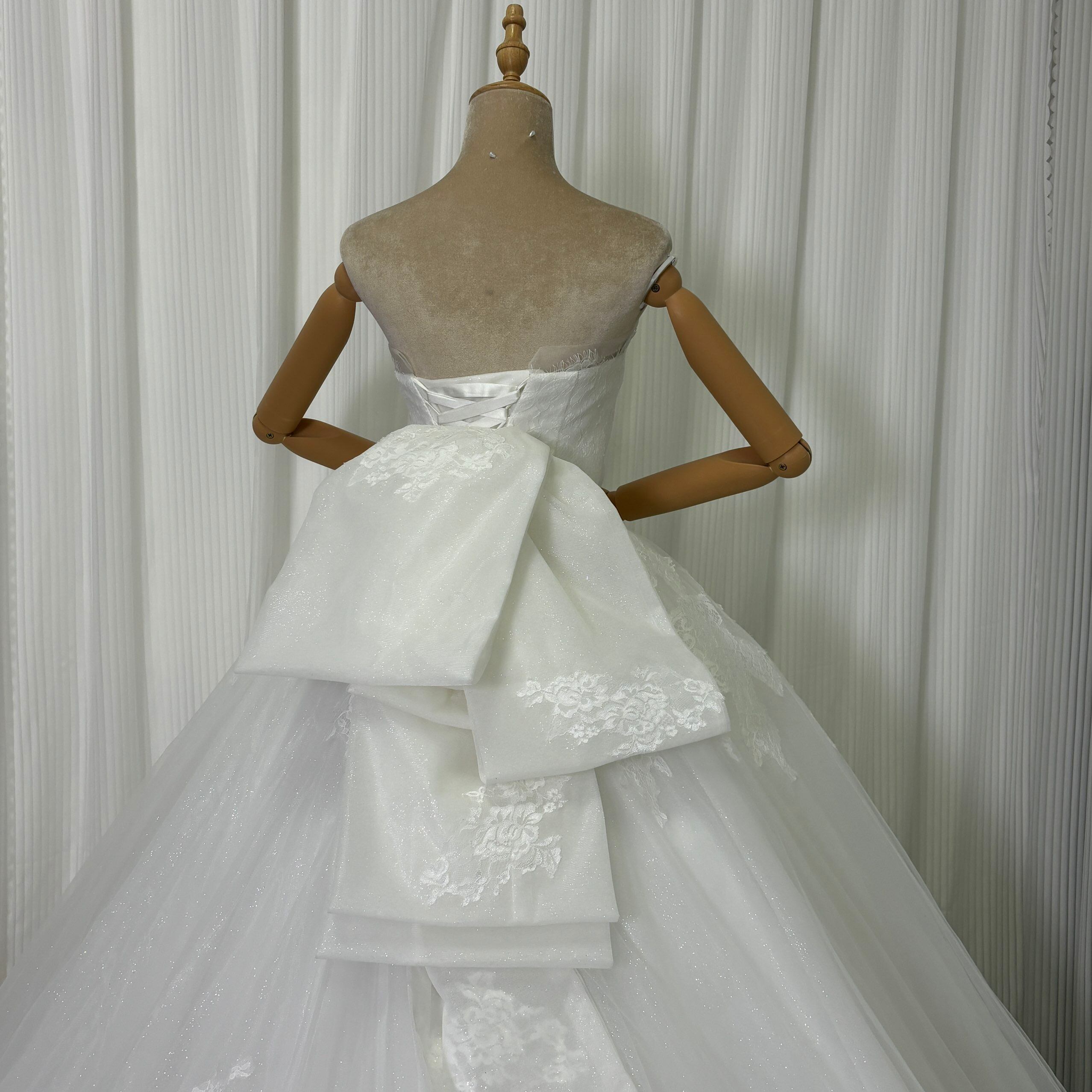 ウェディングドレス ベアトップ エレガントレース ふっくら柔らかなバックリボン 華やかなトレーン 拳式