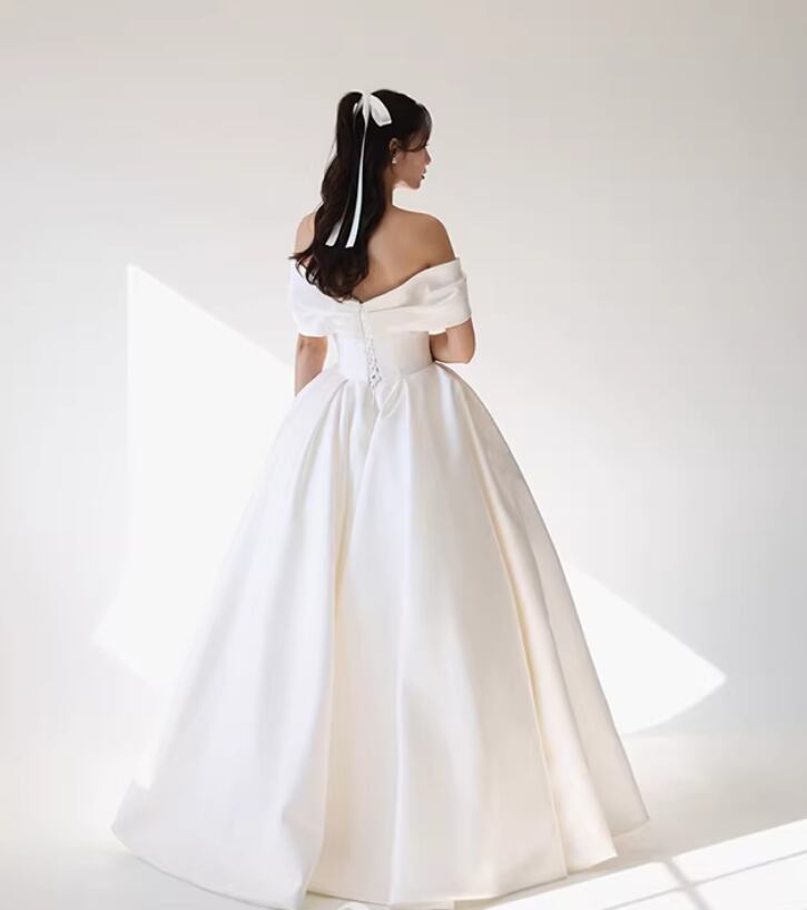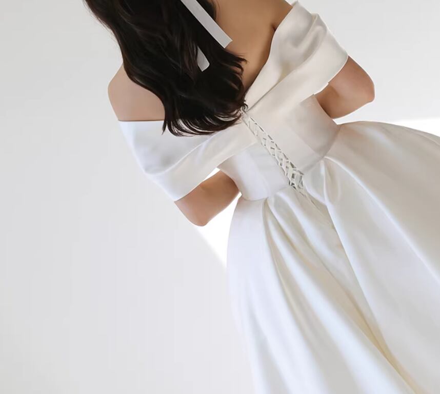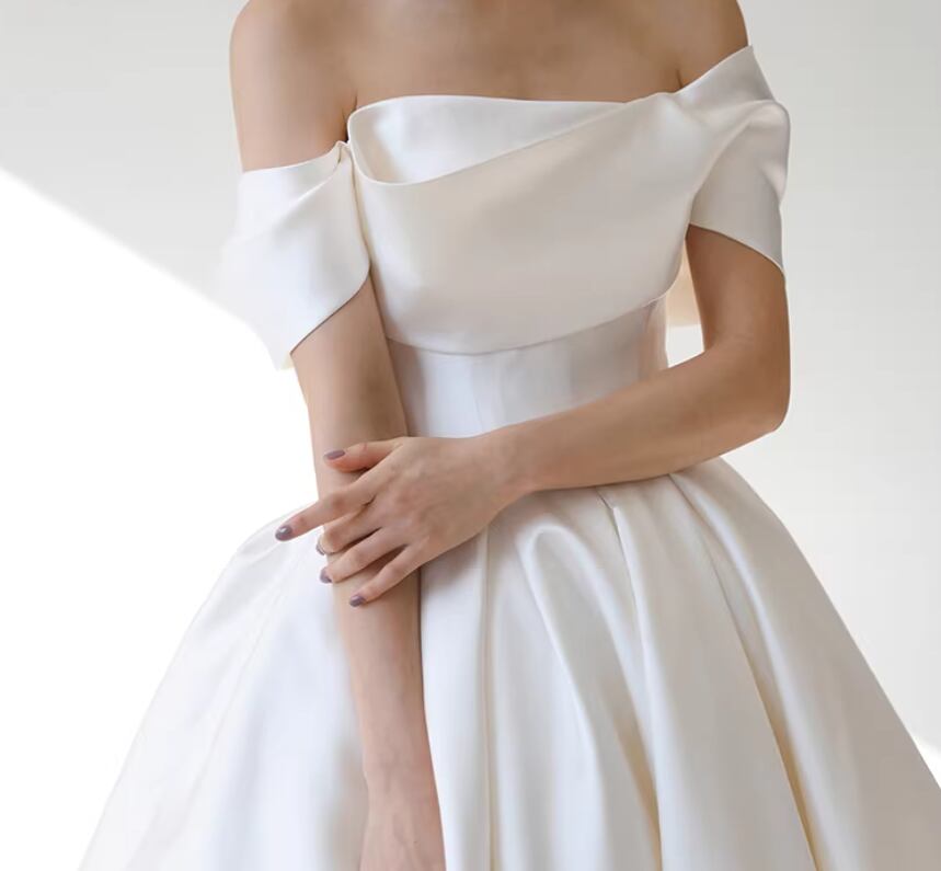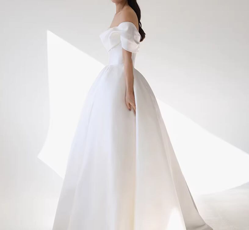 ウェディングドレス オフショルダー ロイヤルサテン デザイン感 細見えシルエット 拳式/前撮り