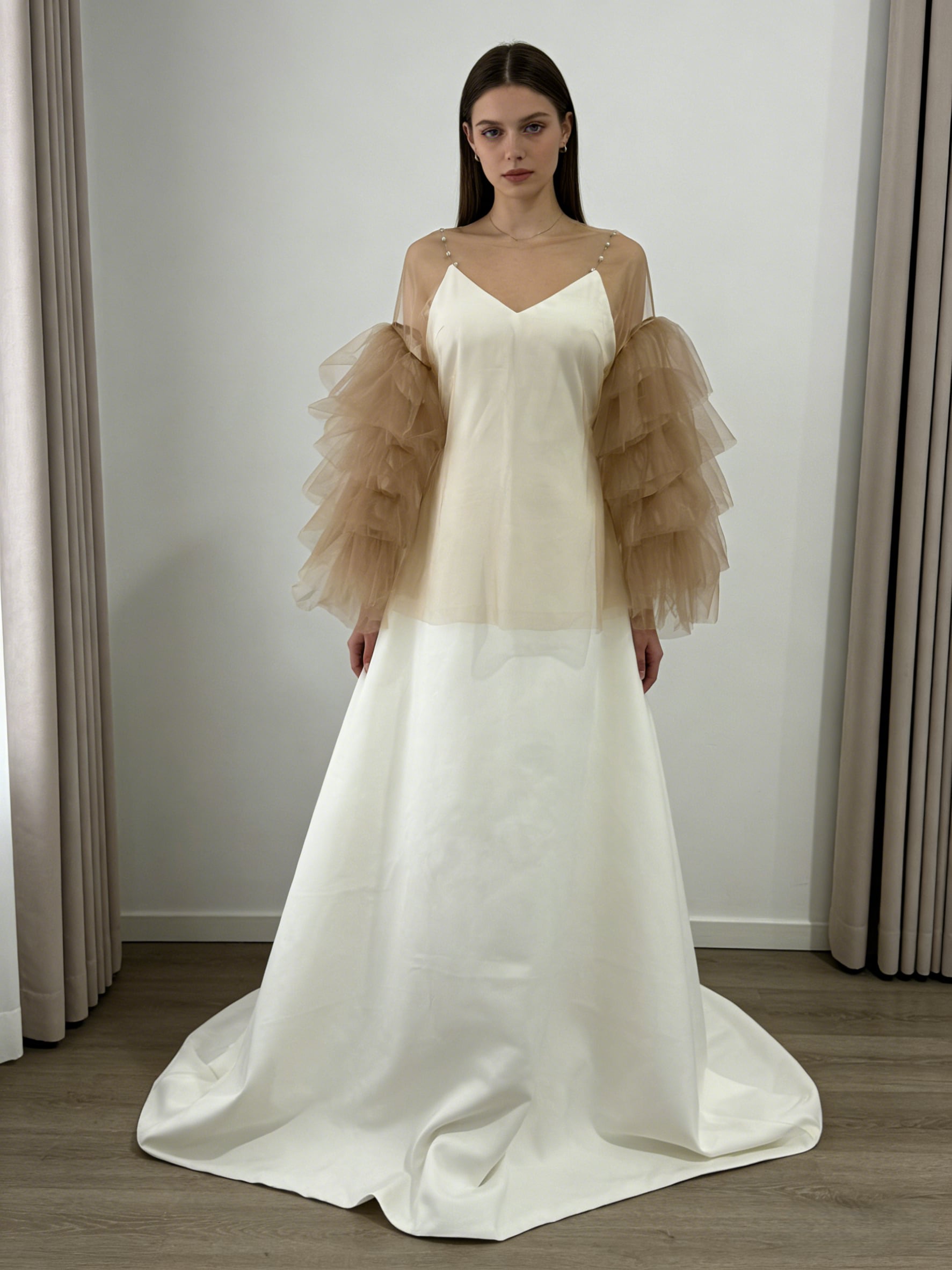 パーティードレス パールキャミソール+トップス フリル袖 ソフトチュール 妊婦 二次会