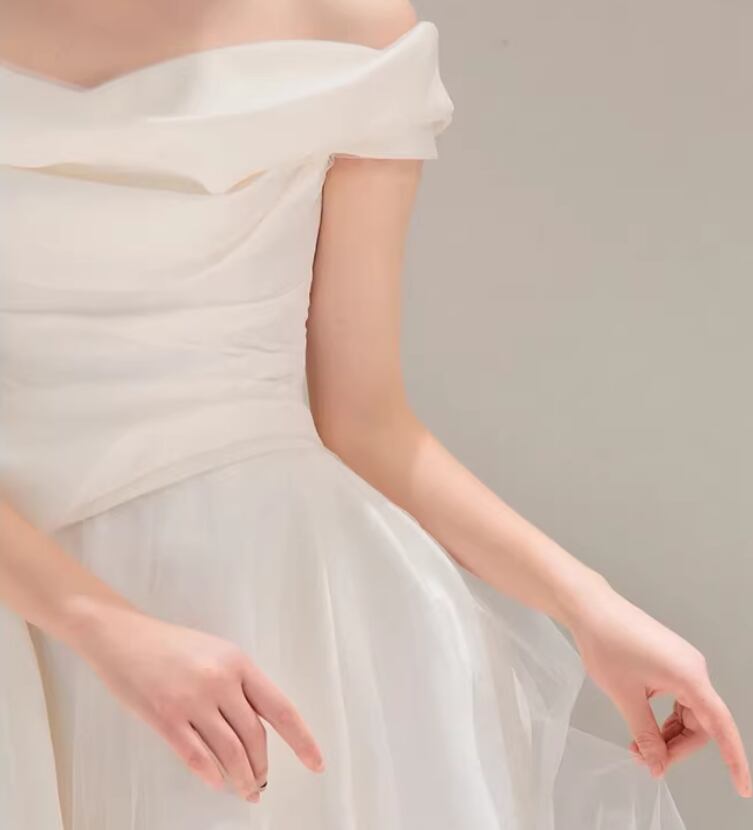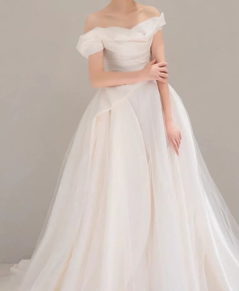 ウェディングドレス オフショルダー ハンドドレープ 揺らめく裾 ふわふわドレス デザイン感 拳式