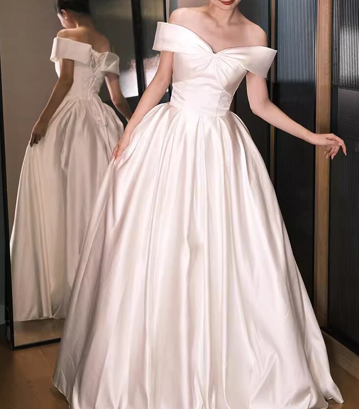 エレガント ウェディングドレス オフショルダー Aライン 編み上げ ロング スレンダーライン 二次会