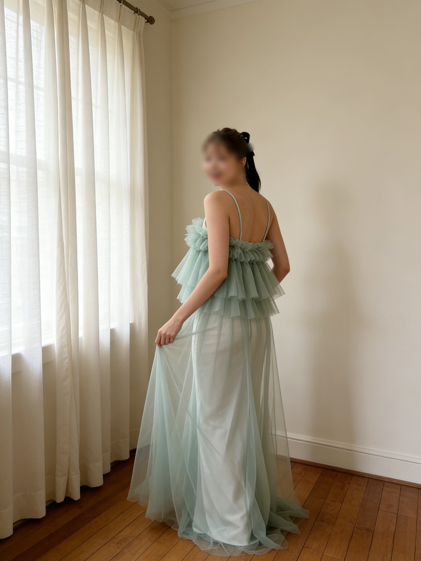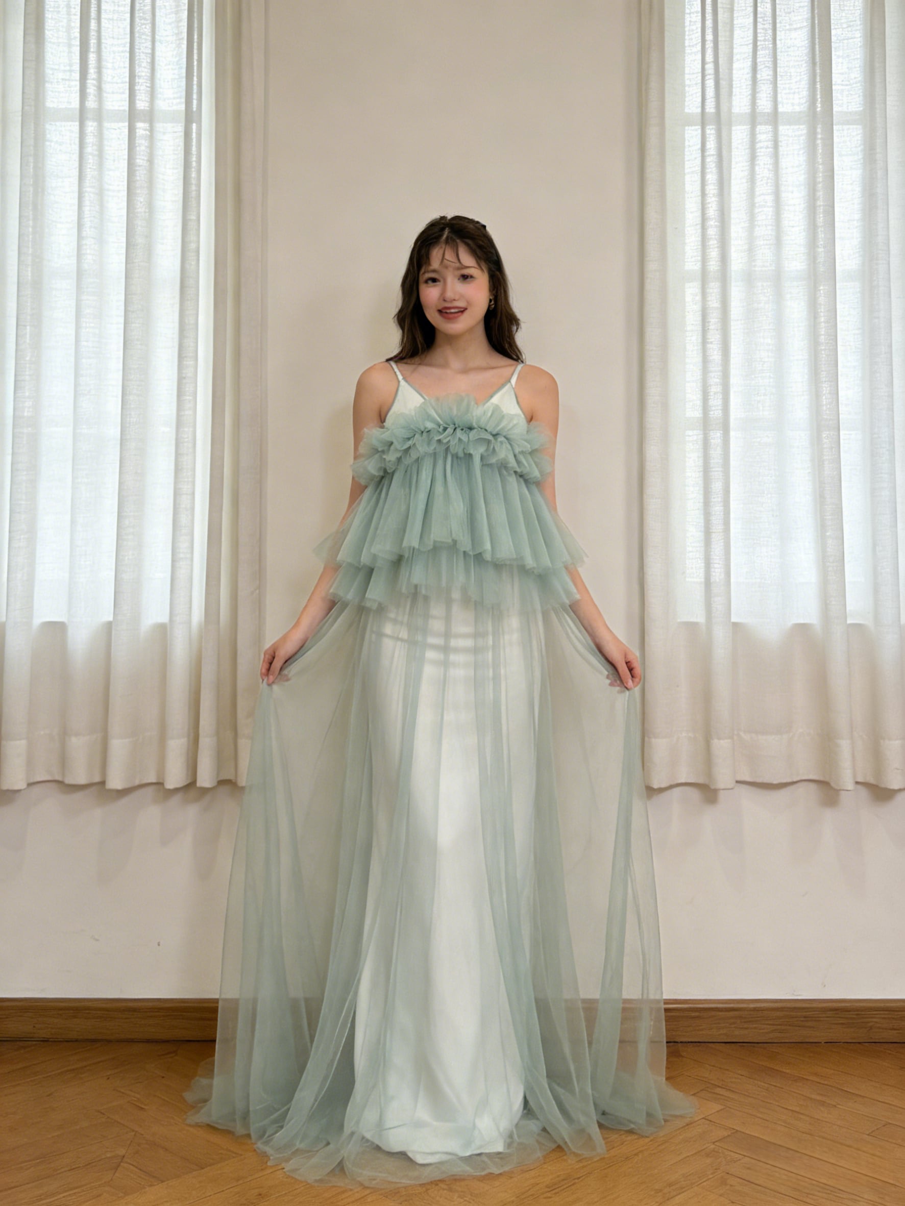 パーティードレス ミントグリーン 2ways キャミソール ふわふわドレス マタニティ 前撮り