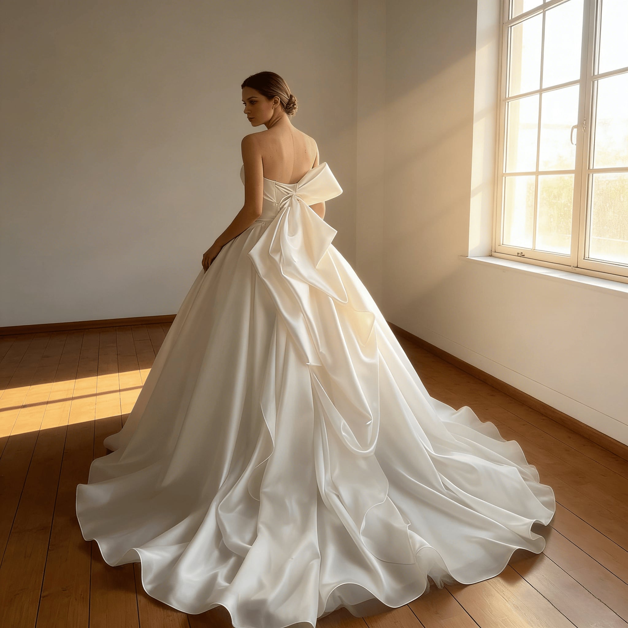 ウエディングドレス ベアトップ ふっくら柔らかなバックリボン ボリュームドレス 編み上げ 結婚式