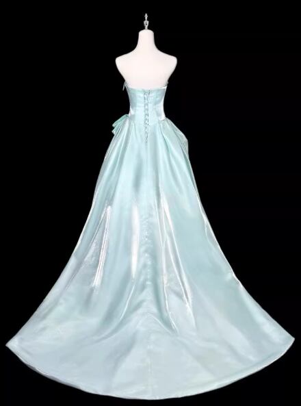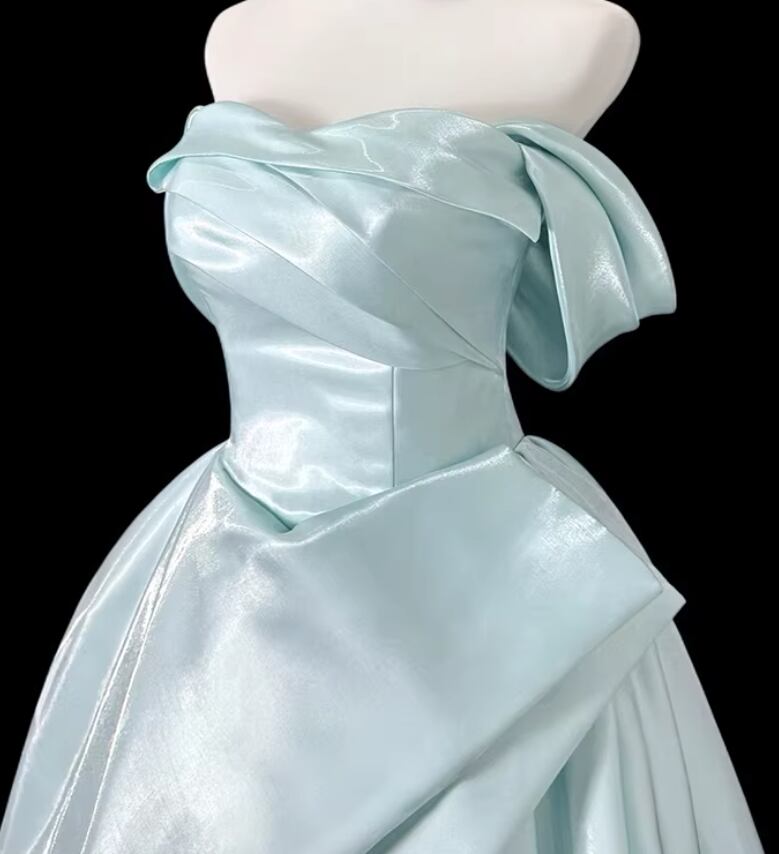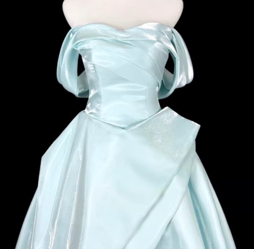 カラードレス ブルー 取り外しオフショルダー 光沢サテン ミニトレーン 編み上げ 演奏会/音楽会