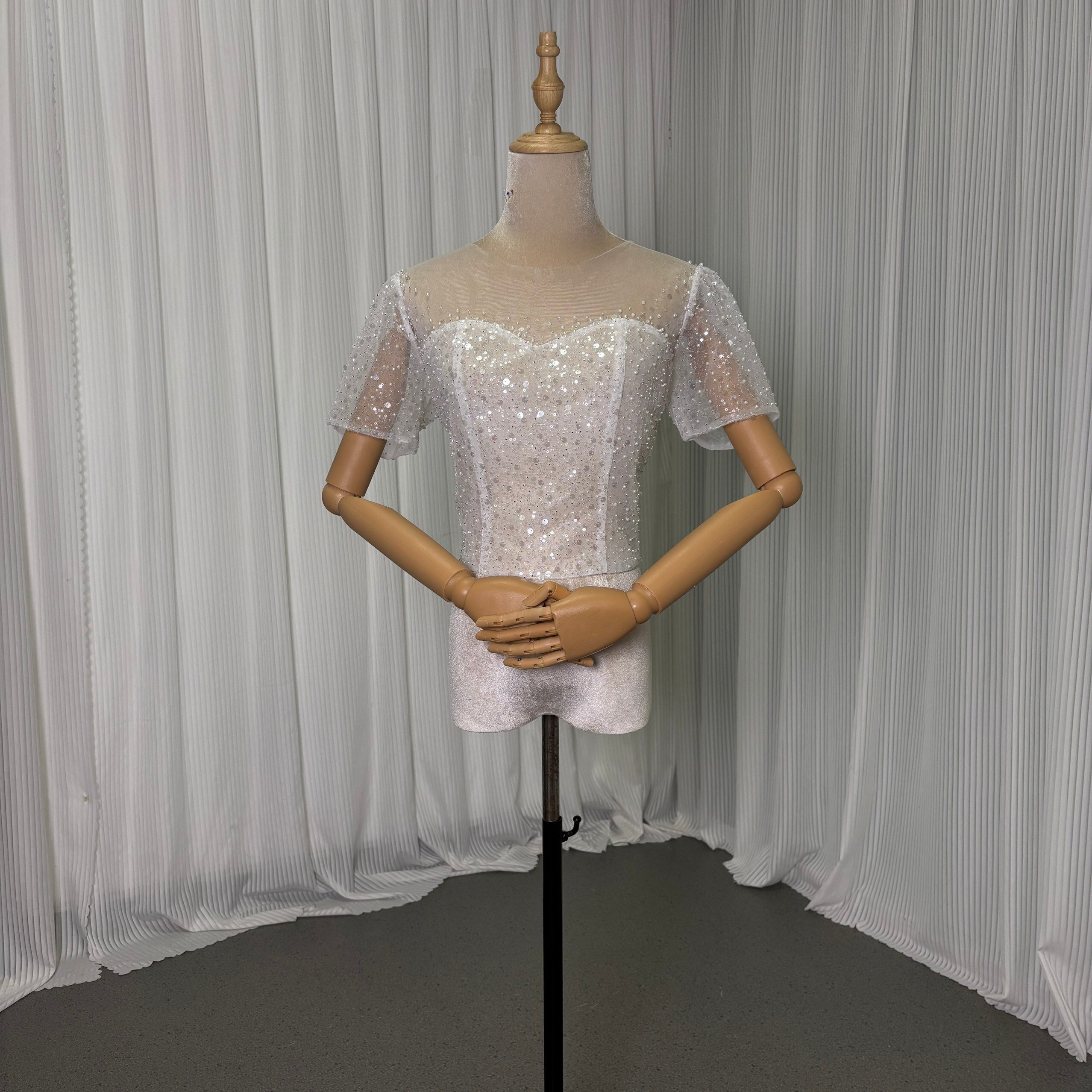トップス 短袖 シークインチュール パール ハンドメイド 編み上げ 結婚式/ウェディングドレス