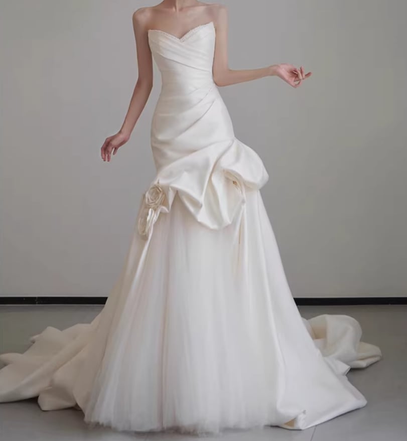 ウェディングドレス ベアトップ ラッフルフリル マーメイドライン エレガント 大人っぽい 結婚式