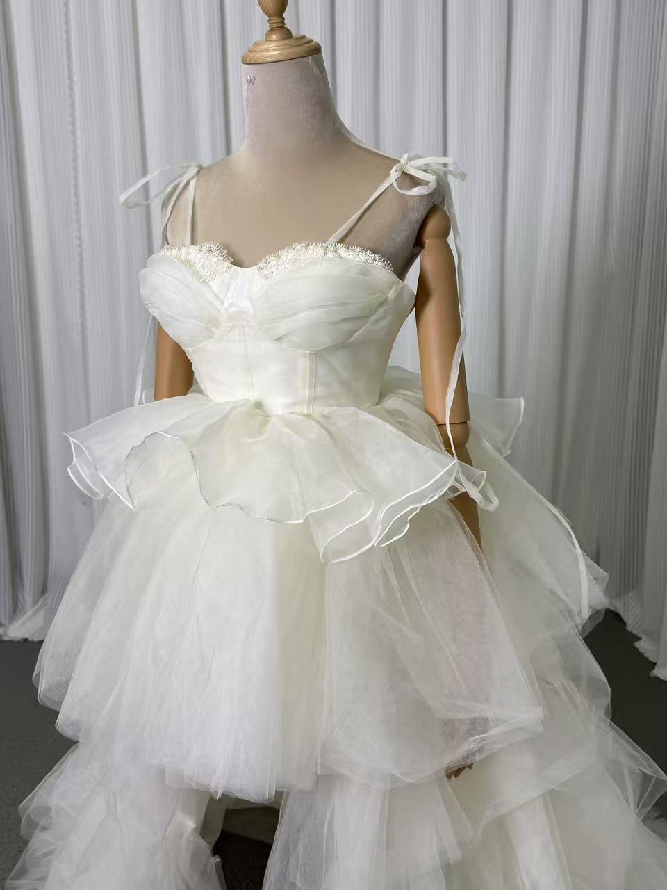 ウェディングドレス シャンパン色 キャミソール ラッフルフリル フィッシュテール 繊細レース ファスナー 披露宴