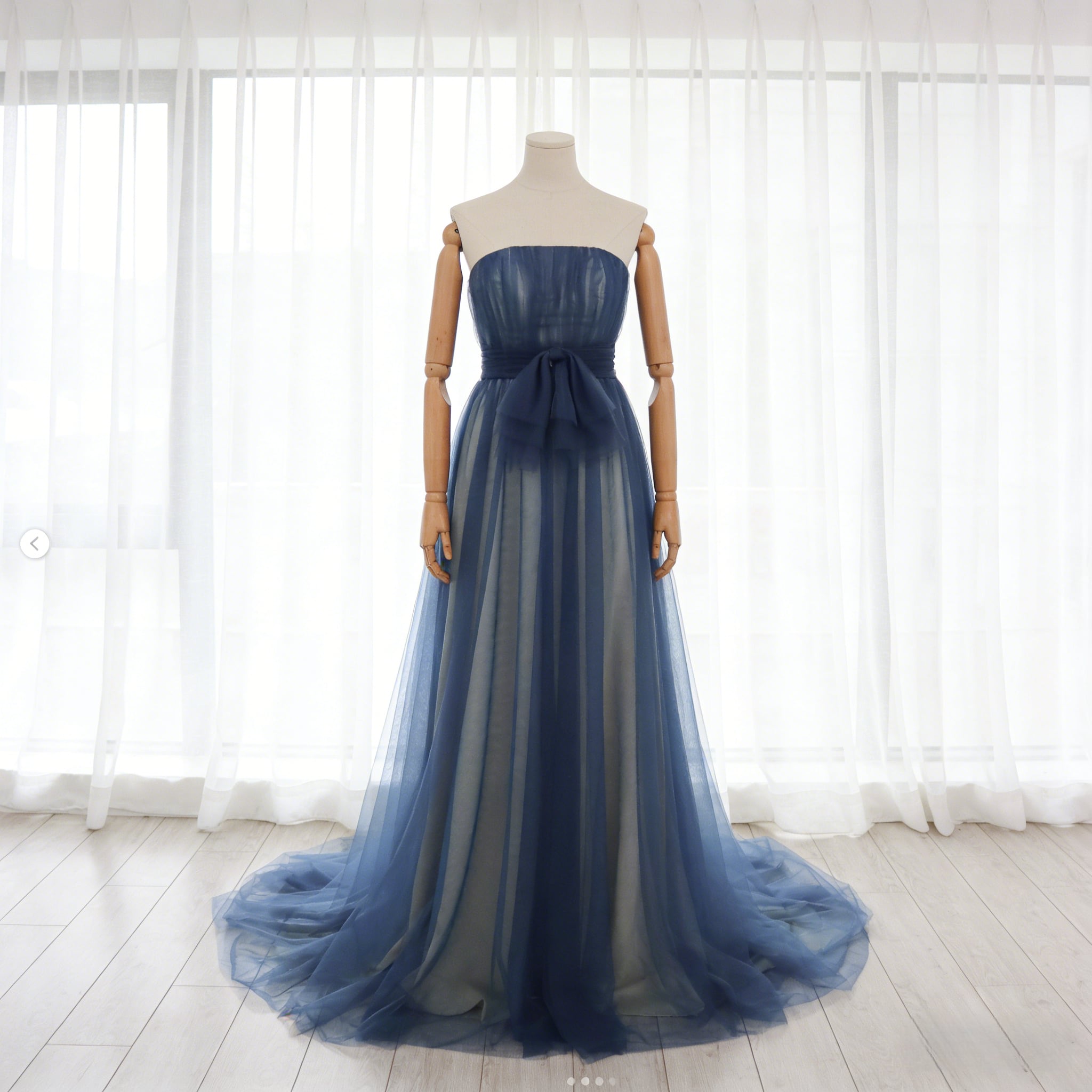 カラードレス ネイビー ソフトチュール ミニトレーン 背中見せ ファスナー 披露宴