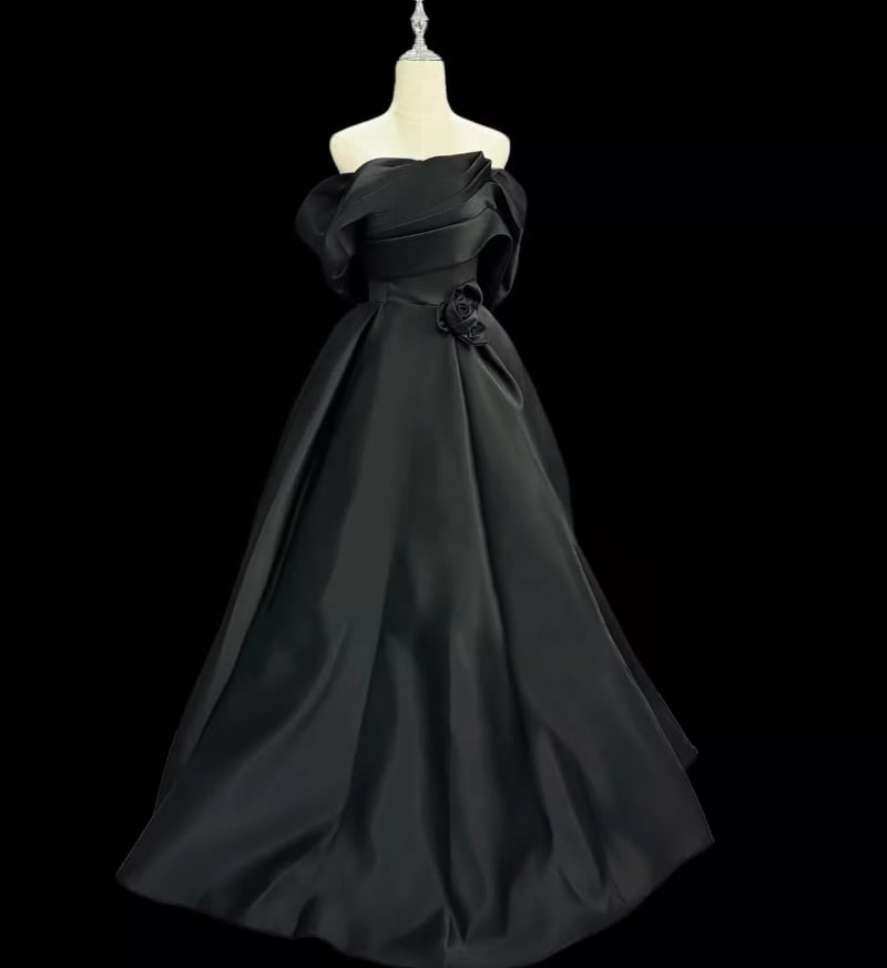 パーティードレス ブラック オフショルダー ハンドドレープ バラトレーン 編み上げ 大人っぽい 発表会