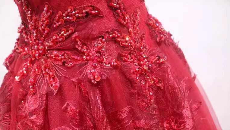 カラードレス ワインレッド オフショルダー キラキラ光る刺繍 チュールスカート 編み上げ フランス風 披露宴