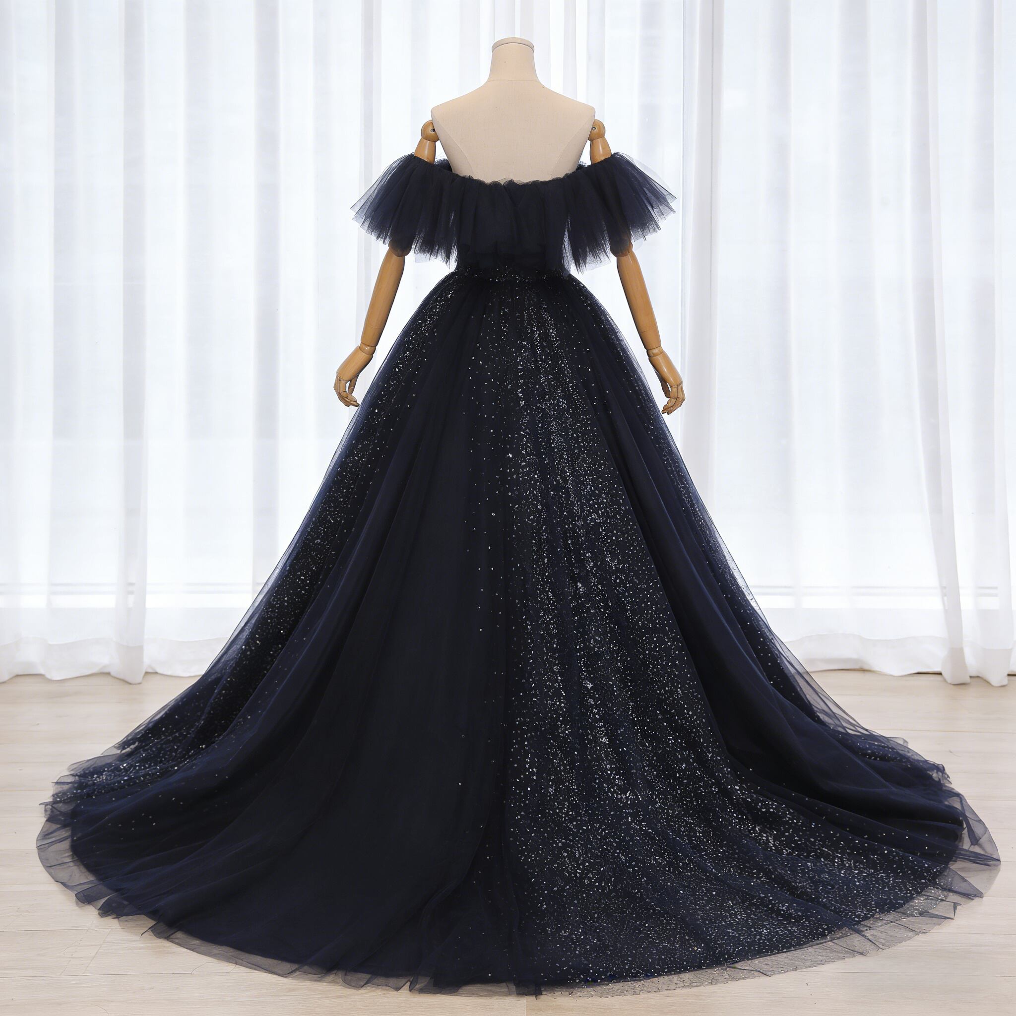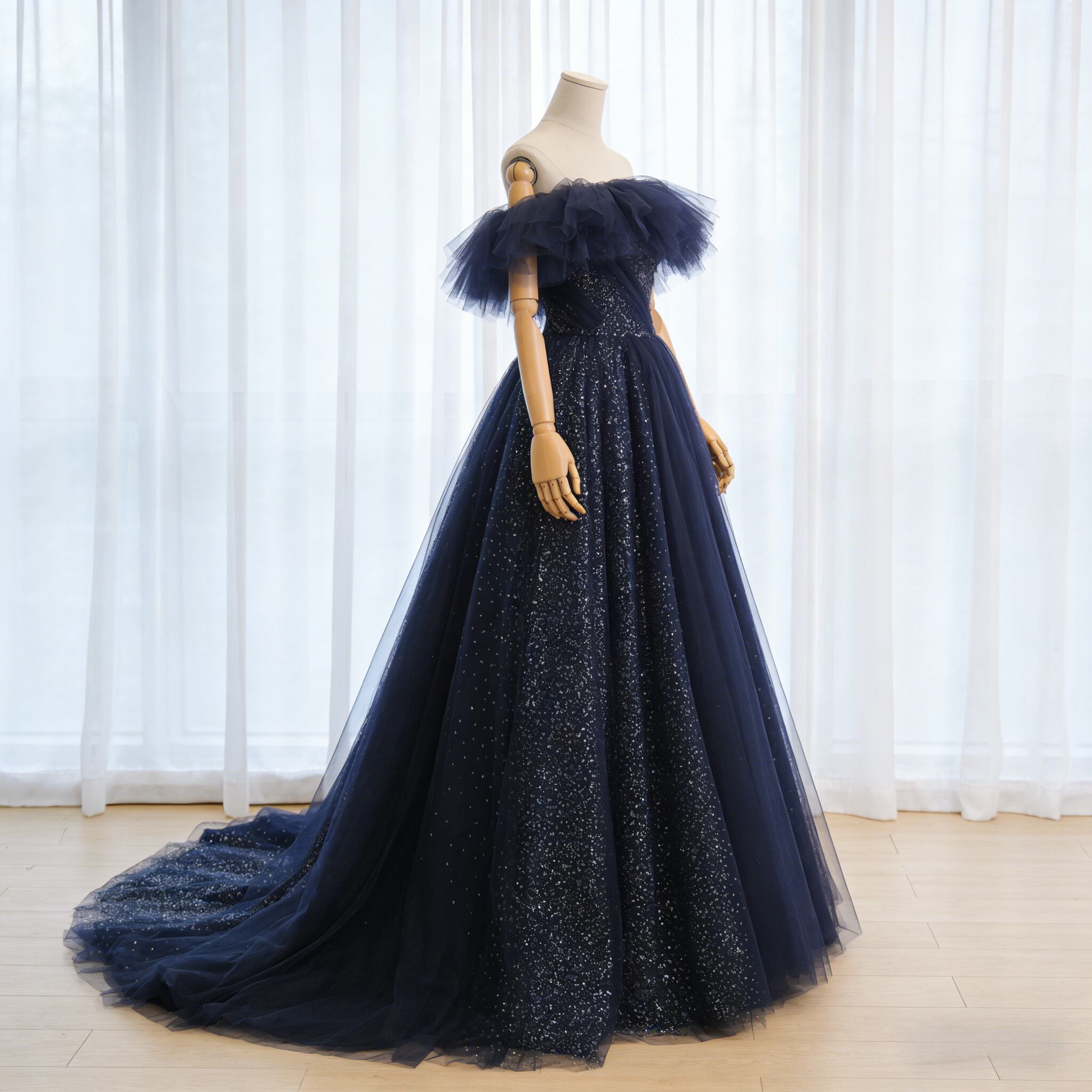 カラードレス ネイビー オフショルダー シークインチュール プリンセスライン 披露宴