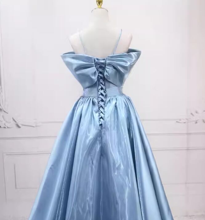 カラードレス ブルー キャミソール オフショルダー ハンドドレープ 光沢サテン ロング 披露宴