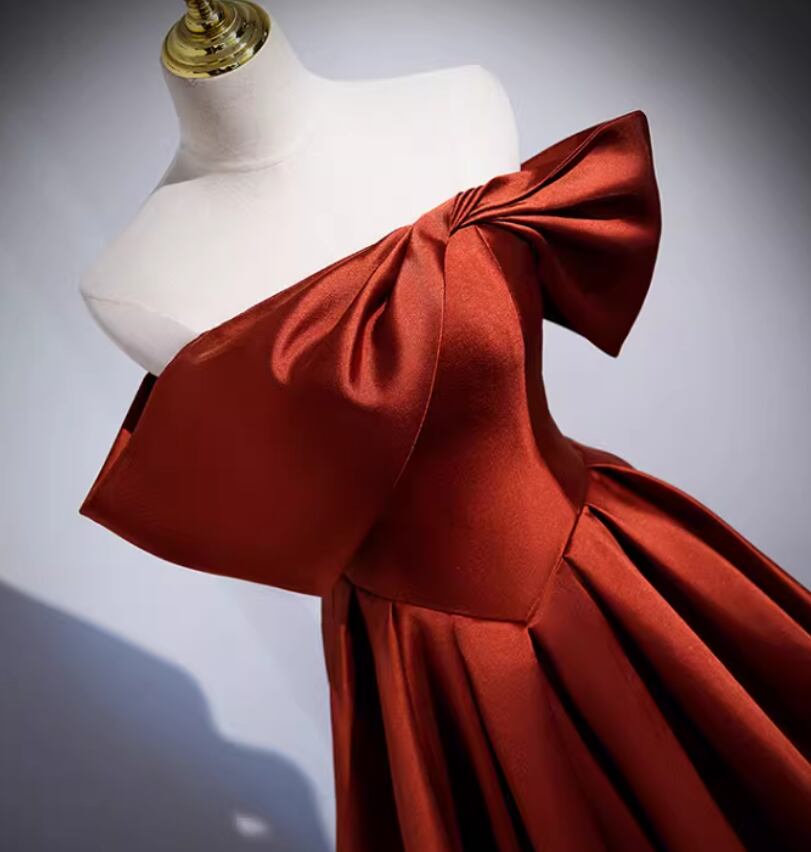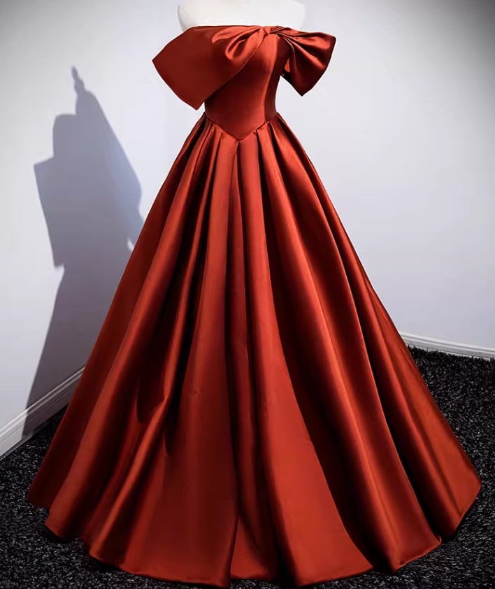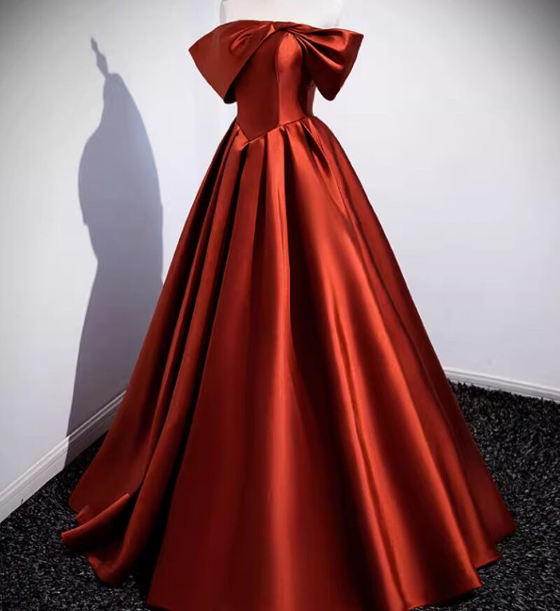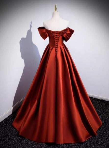 カラードレス オレンジ オフショルダー 光沢サテン Aライン 編み上げ 大人っぽい 二次会