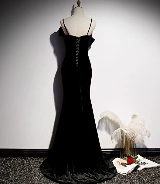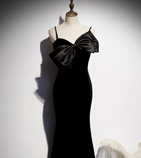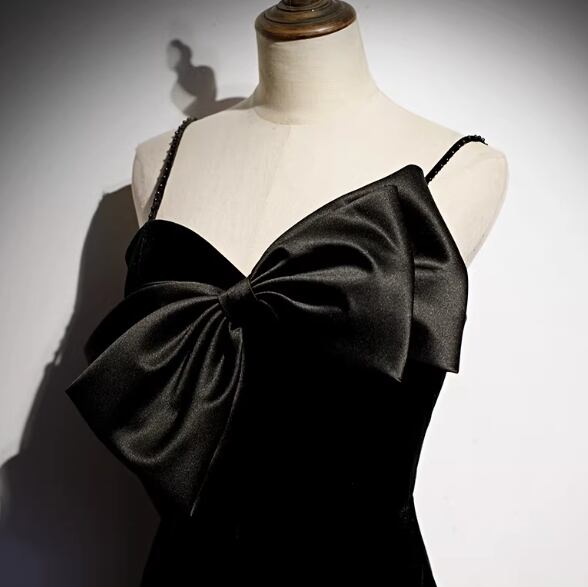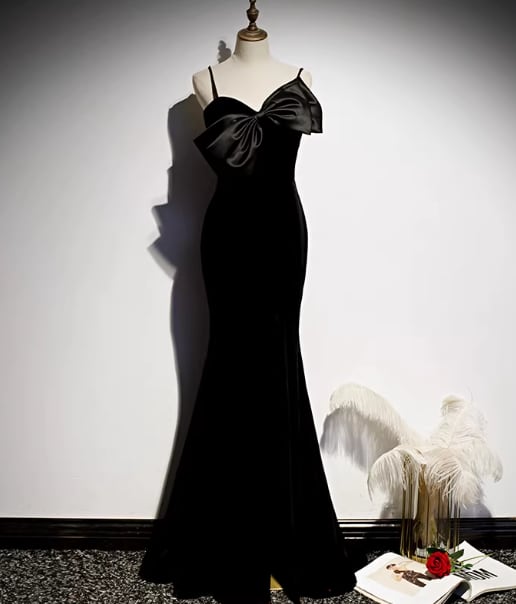 パーティードレス パール キャミソール ビロード ブラック リボン マーメイドライン ミニトレーン 音楽会/発表会