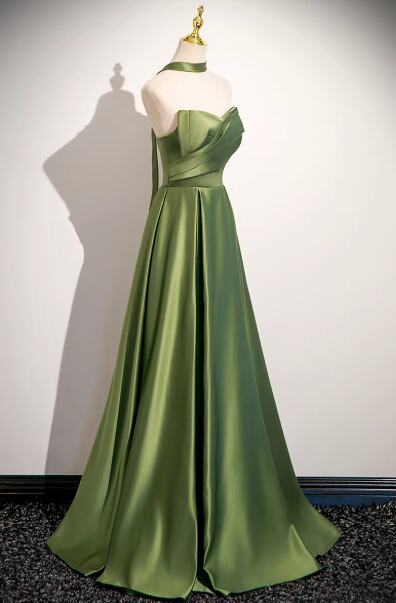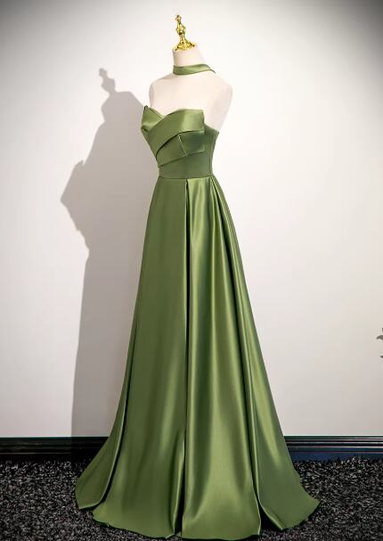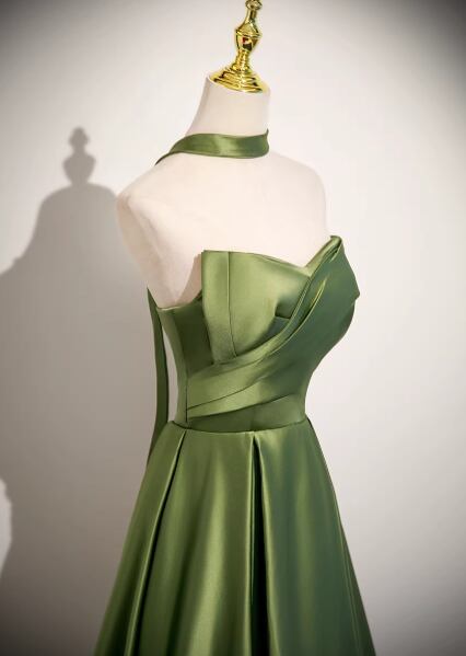エレガント カラードレス グリーン ベアトップ ハンドドレープ 細見えシルエット 編み上げ 2次会/合コン