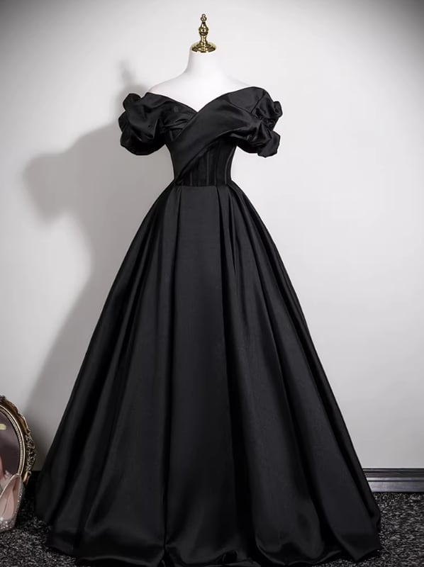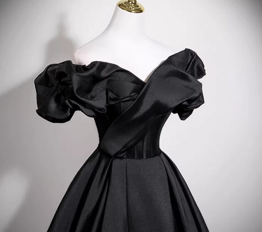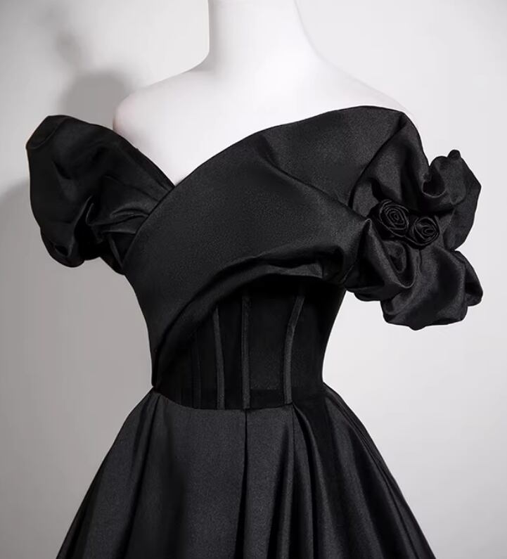 フランス風 パーティードレス ブラック オフショルダー バラトレーン Aライン 編み上げ 演奏会