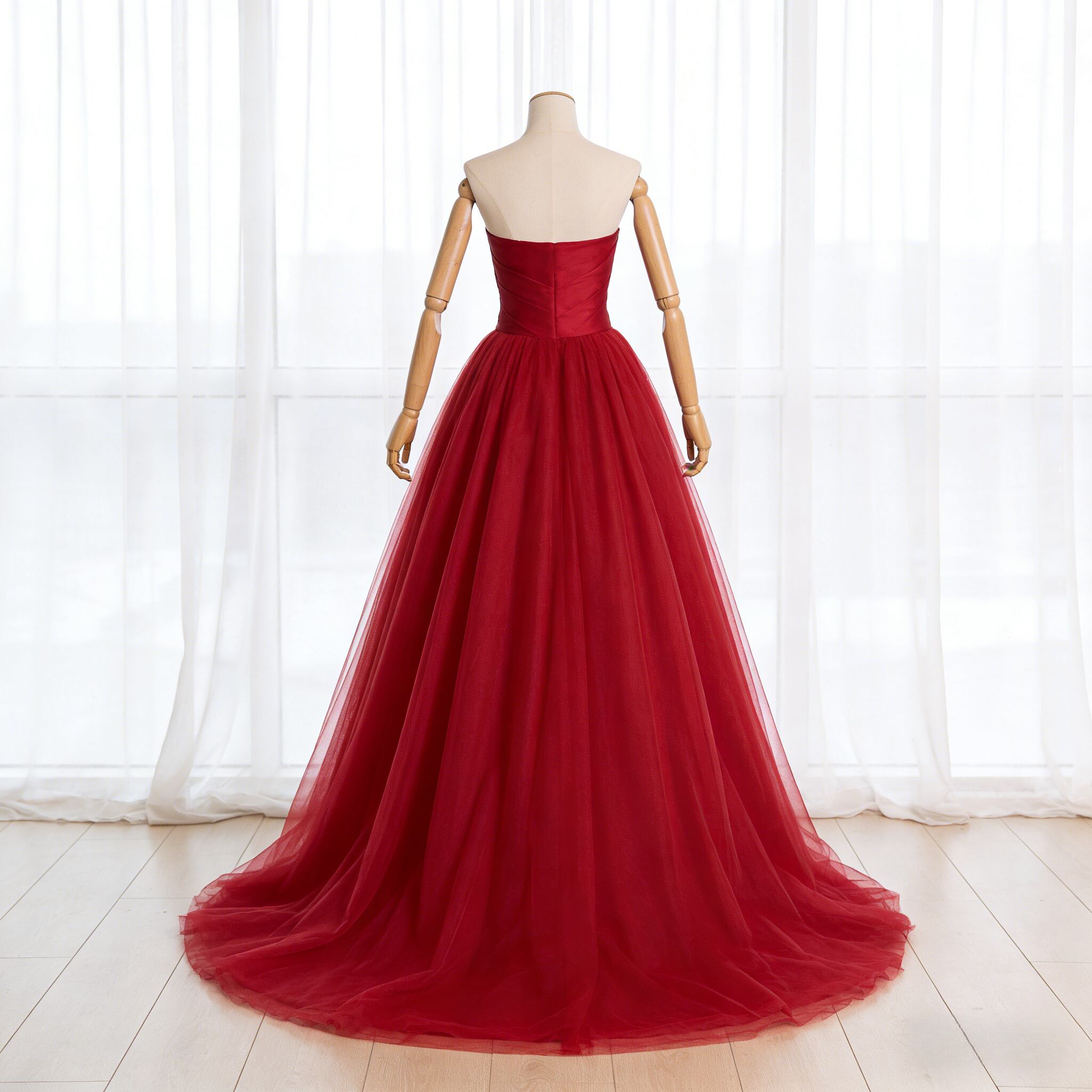 カラードレス ベアトップ チェリーピンク ラッフルフリル チュールスカート 大人っぽい 謝恩会