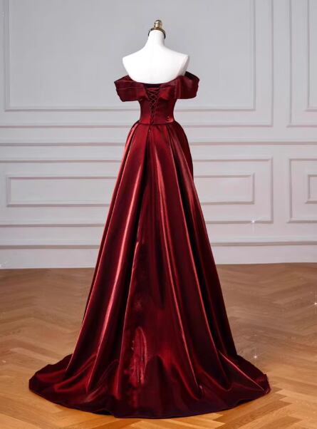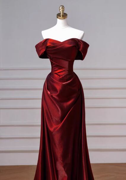 カラードレス ワインレッド オフショルダー ミニトレーン 優雅なシルエット 編み上げ 披露宴