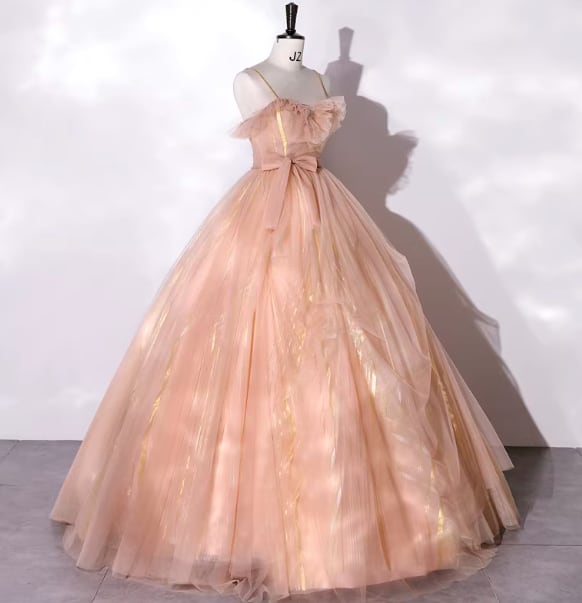 カラードレス オレンジ キャミソール プリンセスライン ロング チュールスカート 編み上げ 音楽会