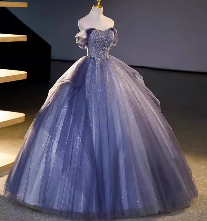 カラードレス ネイビー オフショルダー キラキラ光る刺繍 キラキラチュール フレアスカート 音楽会