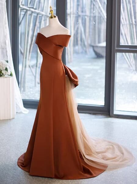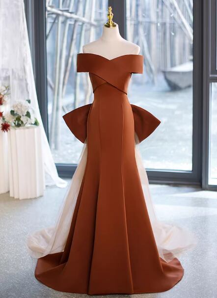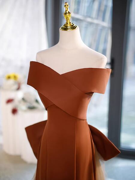 カラードレス テラコッタ色 オフショルダー ふっくら柔らかなバックリボン 優雅なシルエット 演奏会/音楽会