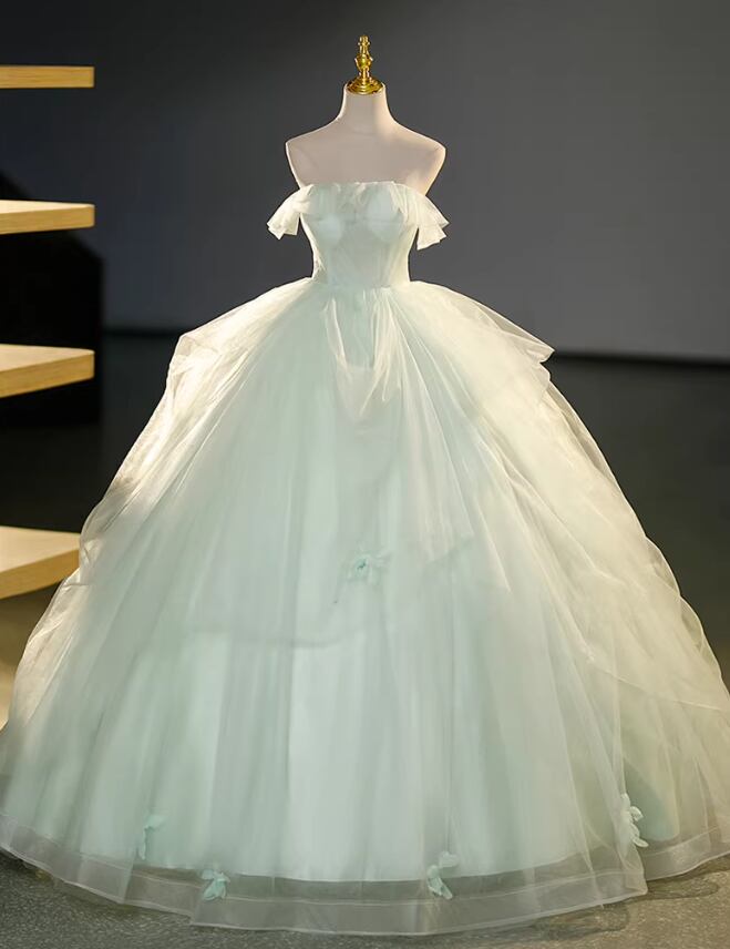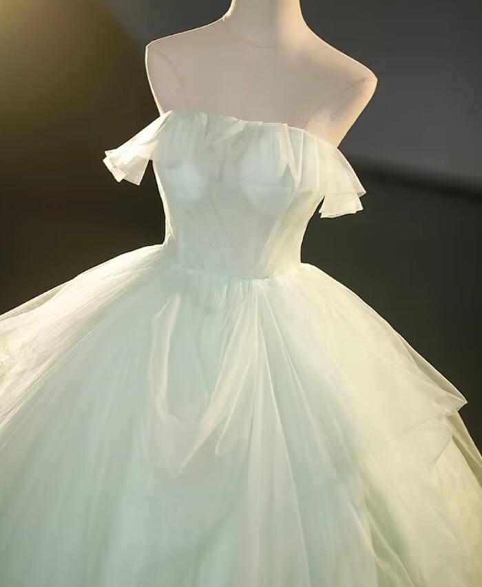カラードレス ライトグリーン ベアトップ 繊細レース プリンセスライン ラッフルフリル ファスナー 花嫁