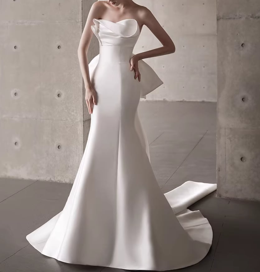 フランス風 ウエディングドレス ベアトップ デザイン感 豪華なバックリボン 優雅なシルエット 拳式/前撮り