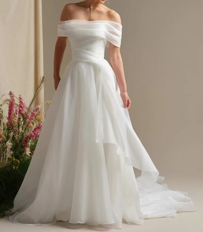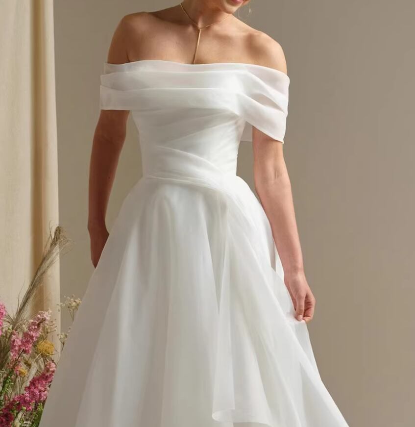 エレガント ウエディングドレス オフショルダー チュールスカート ふわふわドレス 結婚式 大人っぽい
