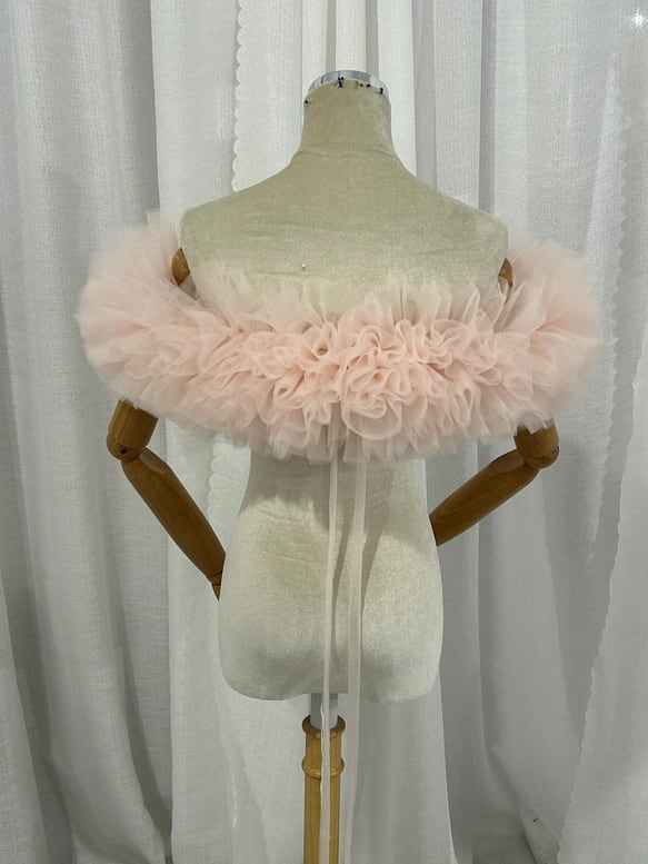 実例写真!取り外しオフショルダーのみ ピンク ソフトチュール 編み上げ 花嫁/カラードレス
