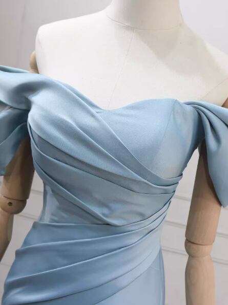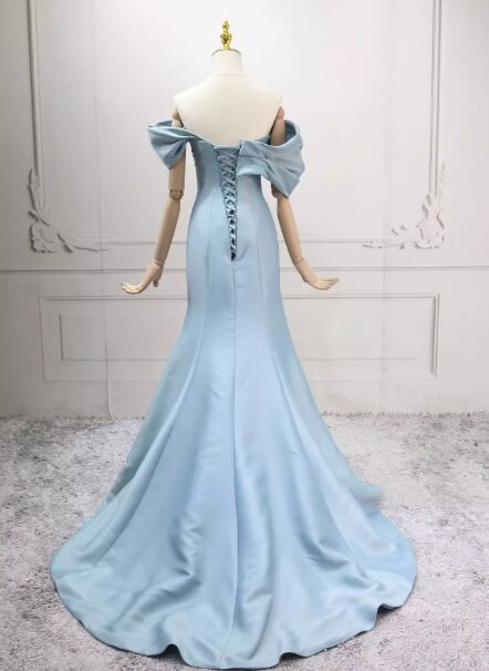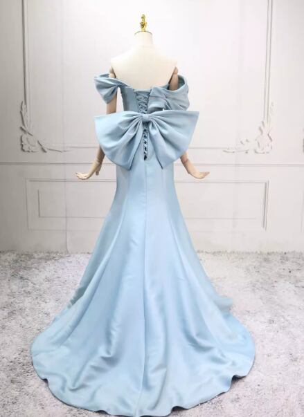 カラードレス ブルー オフショルダー ハンドドレープ マーメイドライン 豪華なバックリボン 編み上げ 演奏会
