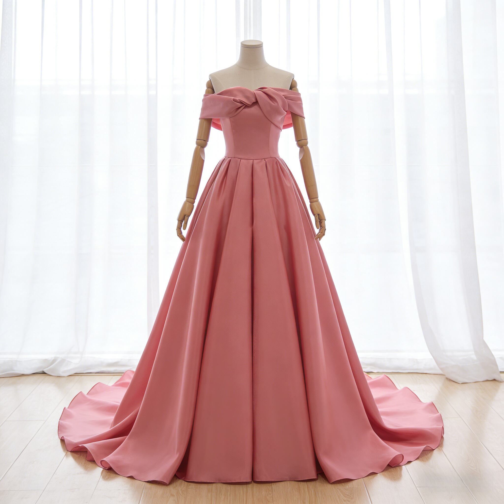 高品質!カラードレス ローズピンク オフショルダー Aライン エレガント ファスナー 披露宴