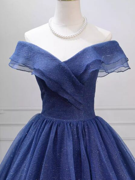 カラードレス ジュエルブルー キラキラチュール フレアスカート 憧れのドレス 編み上げ 音楽会/発表会