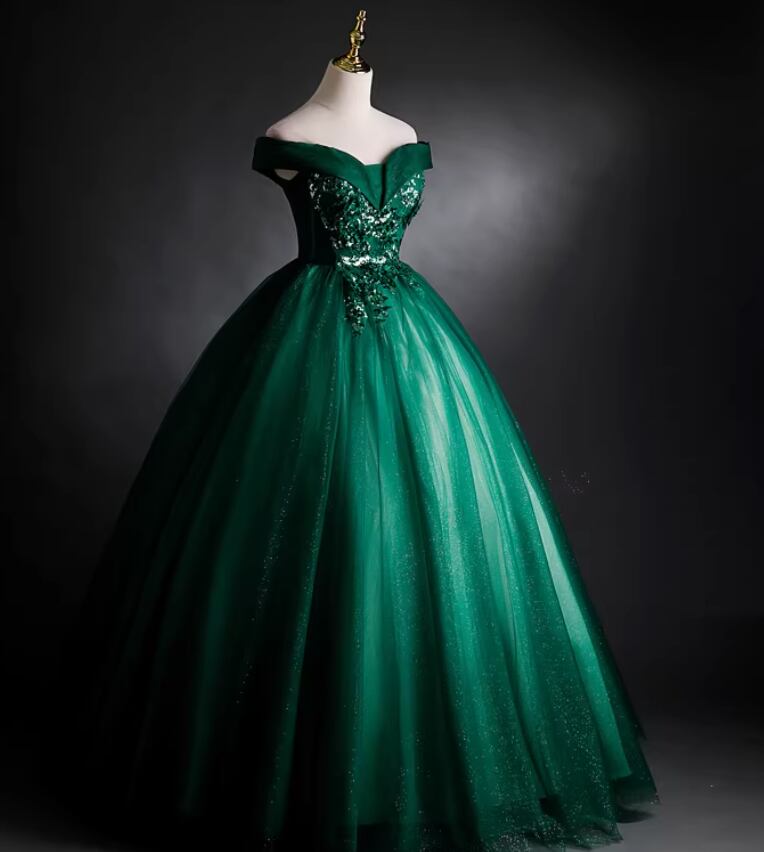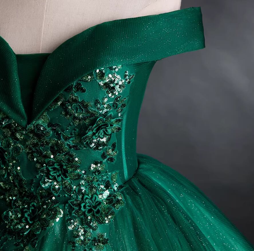 カラードレス 深めな緑 オフショルダー キラキラスパンコール 繊細レース フレアスカート 披露宴