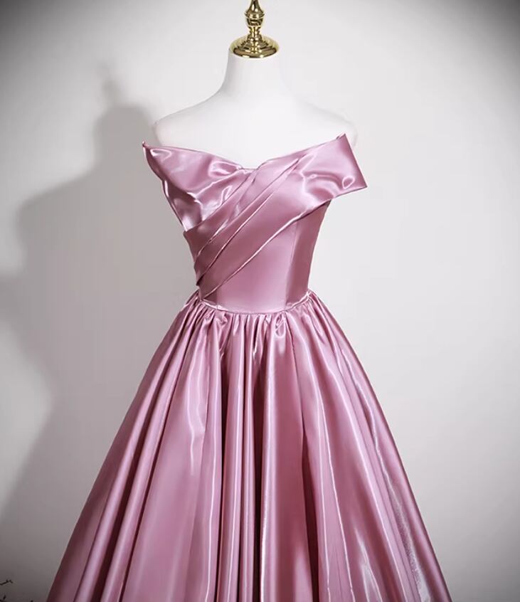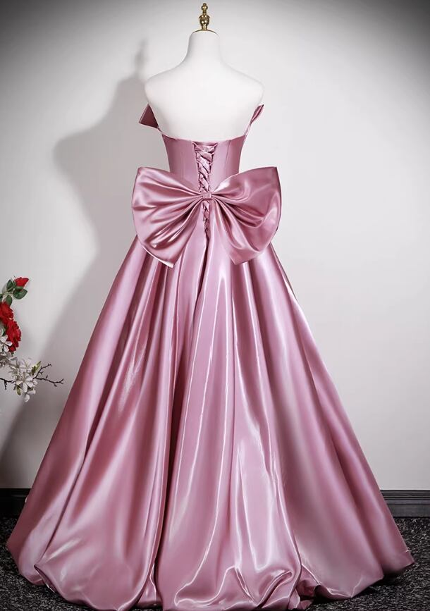 カラードレス ピンク ベアトップ 光沢サテン ハンドドレープ Aライン 豪華なバックリボン 披露宴
