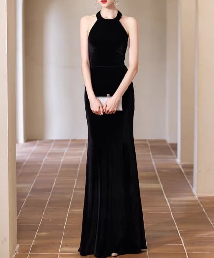 パーティードレス ブラック ホルターネック ビロード マーメイドライン ロング 披露宴