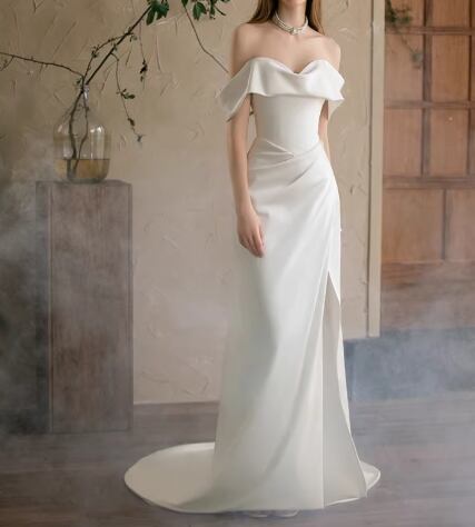 ウェディングドレス オフショルダー 優雅なシルエット フロントスリット セクシー 拳式/前撮り