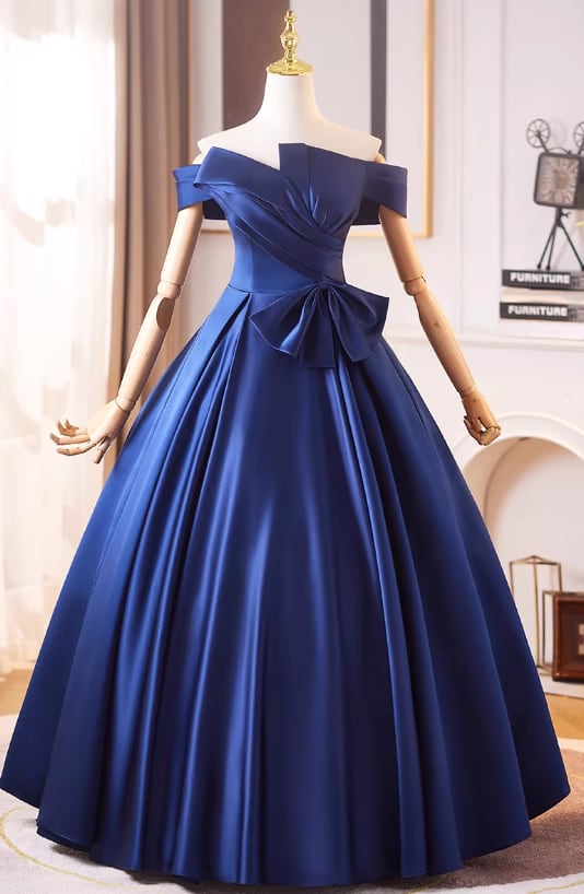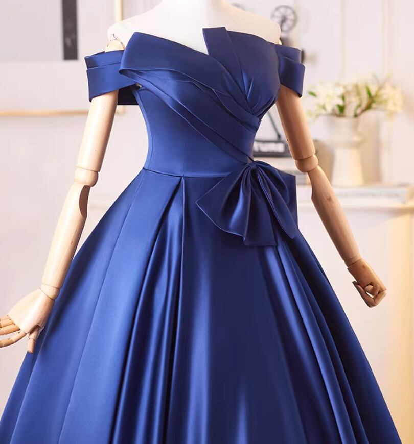 上品!カラードレス ジュエルブルー オフショルダー ハンドドレープ フレアスカート 演奏会/音楽会