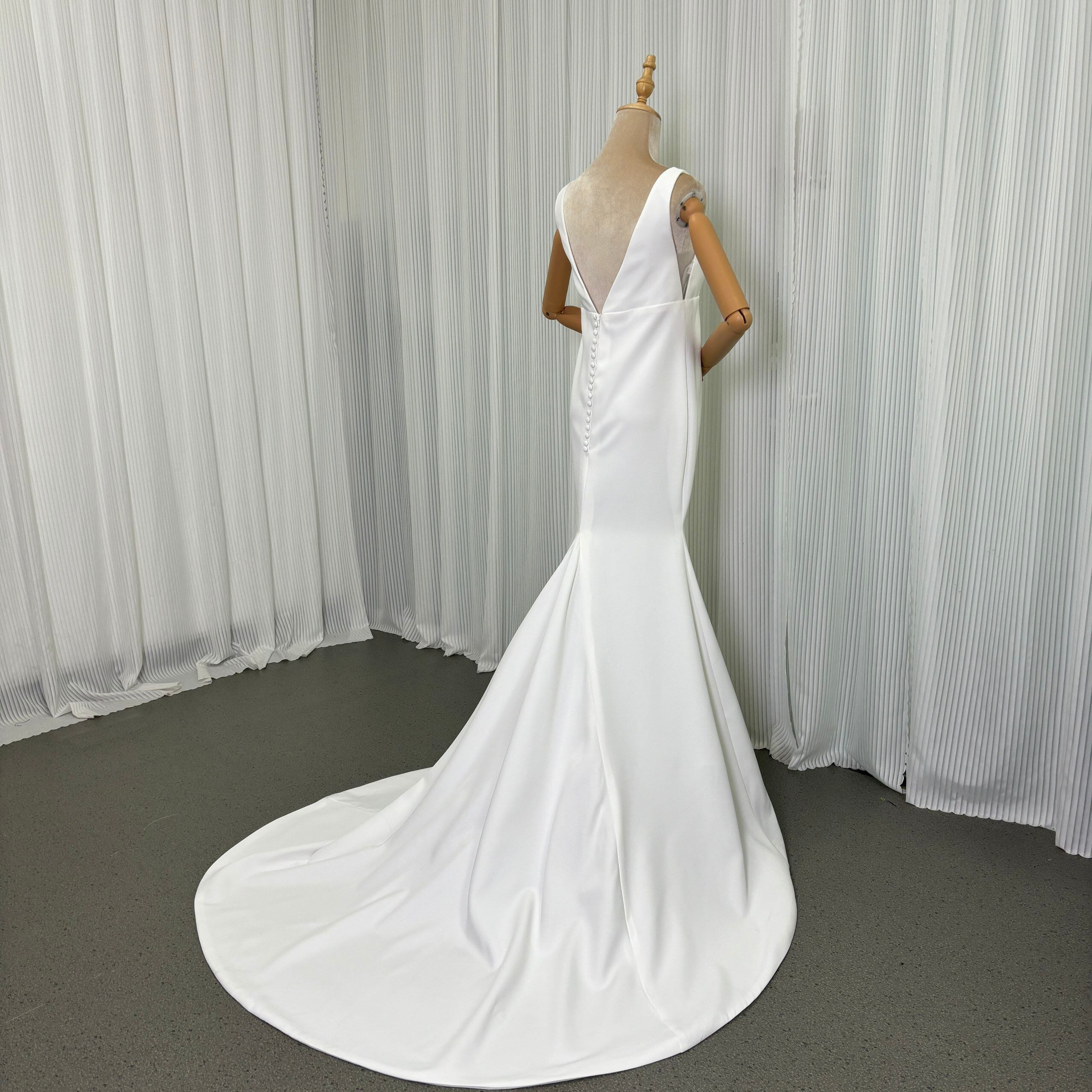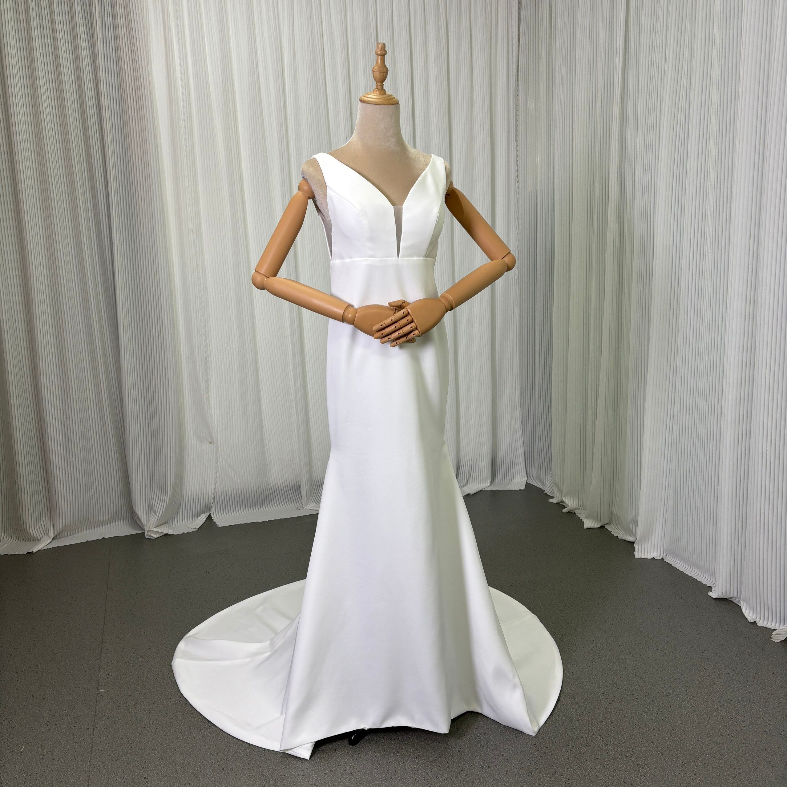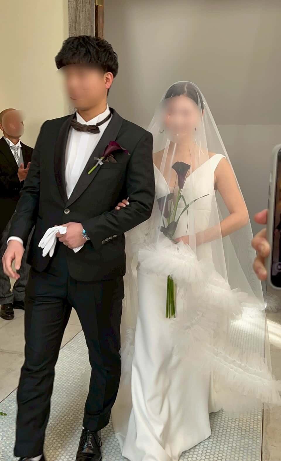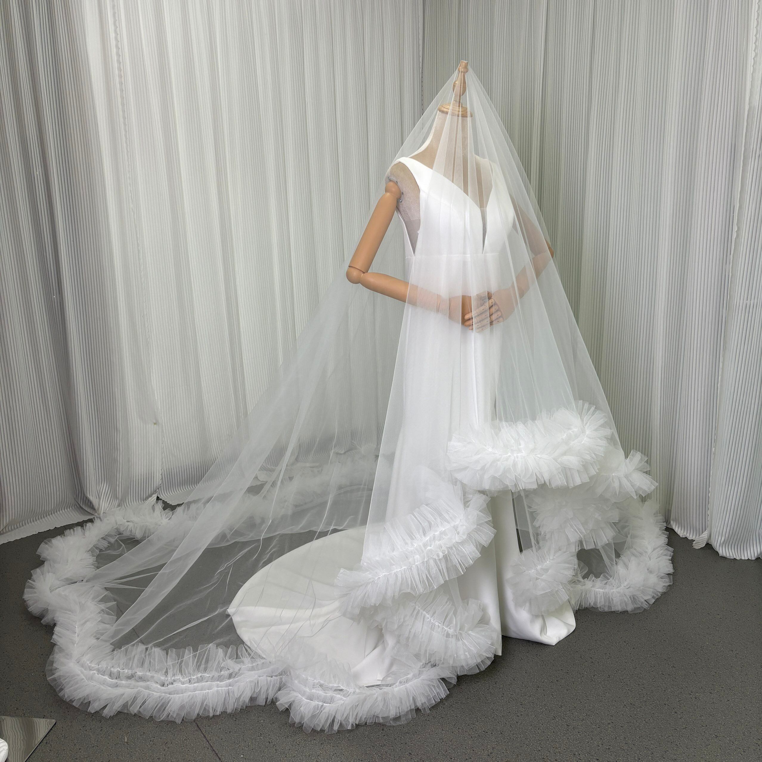 実例写真!ウェディングドレス+ロングベール ラッフルフリル Vネック マーメイドライン 背中見せ 拳式/前撮り