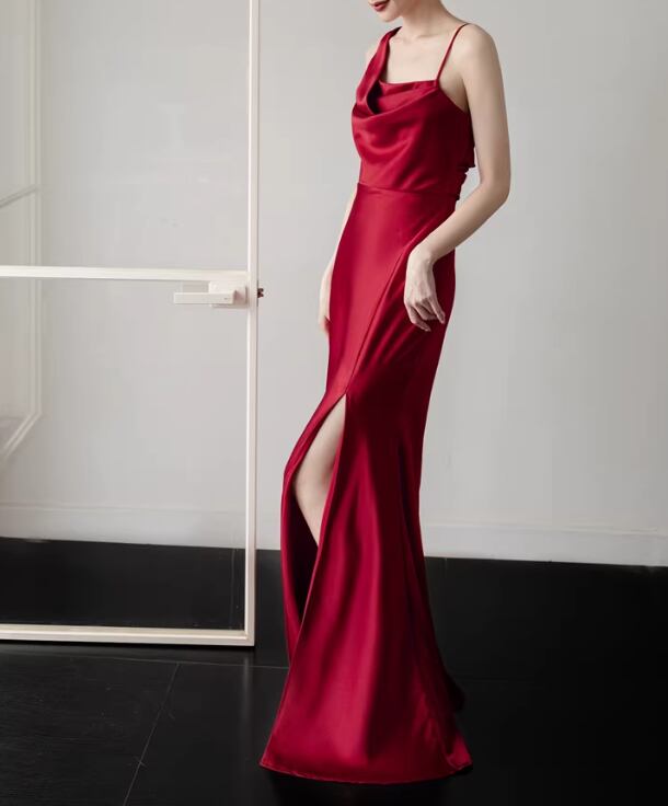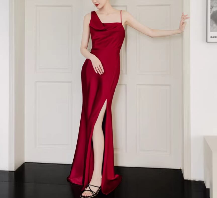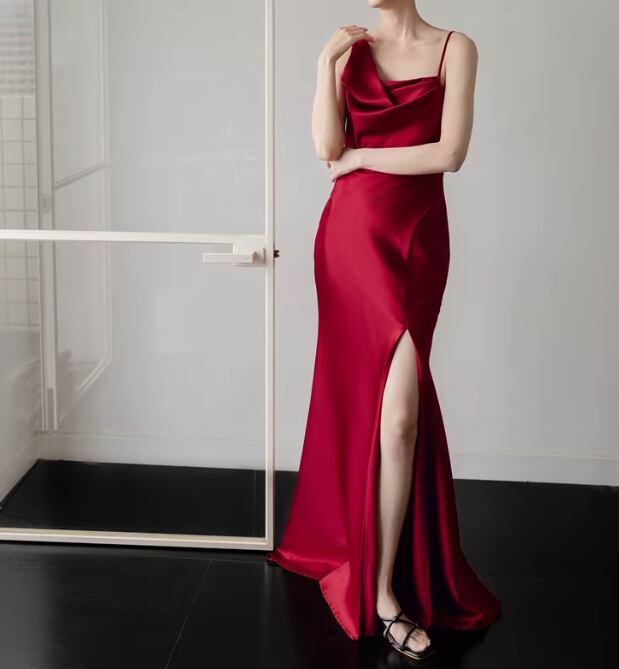 カラードレス ボルドー色 キャミソール フロントスリット 優雅なシルエット クラシカル 披露宴