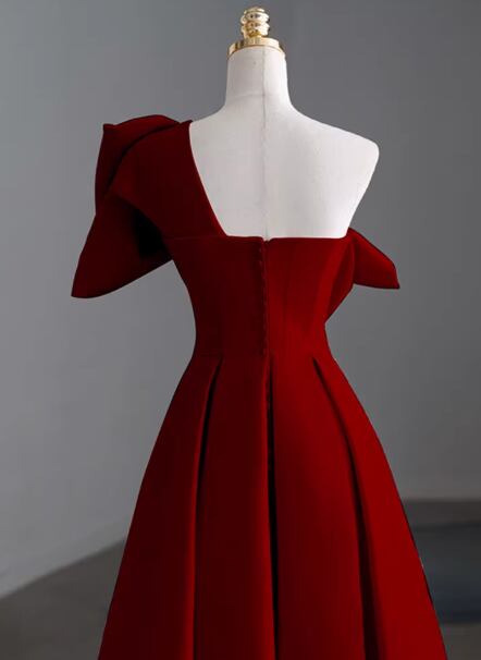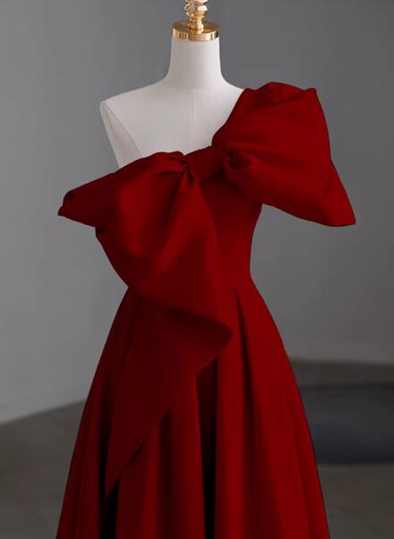 カラードレス ボルドー色 ワンショルダー ふっくら柔らかなリボン Aライン くるみボタン 披露宴
