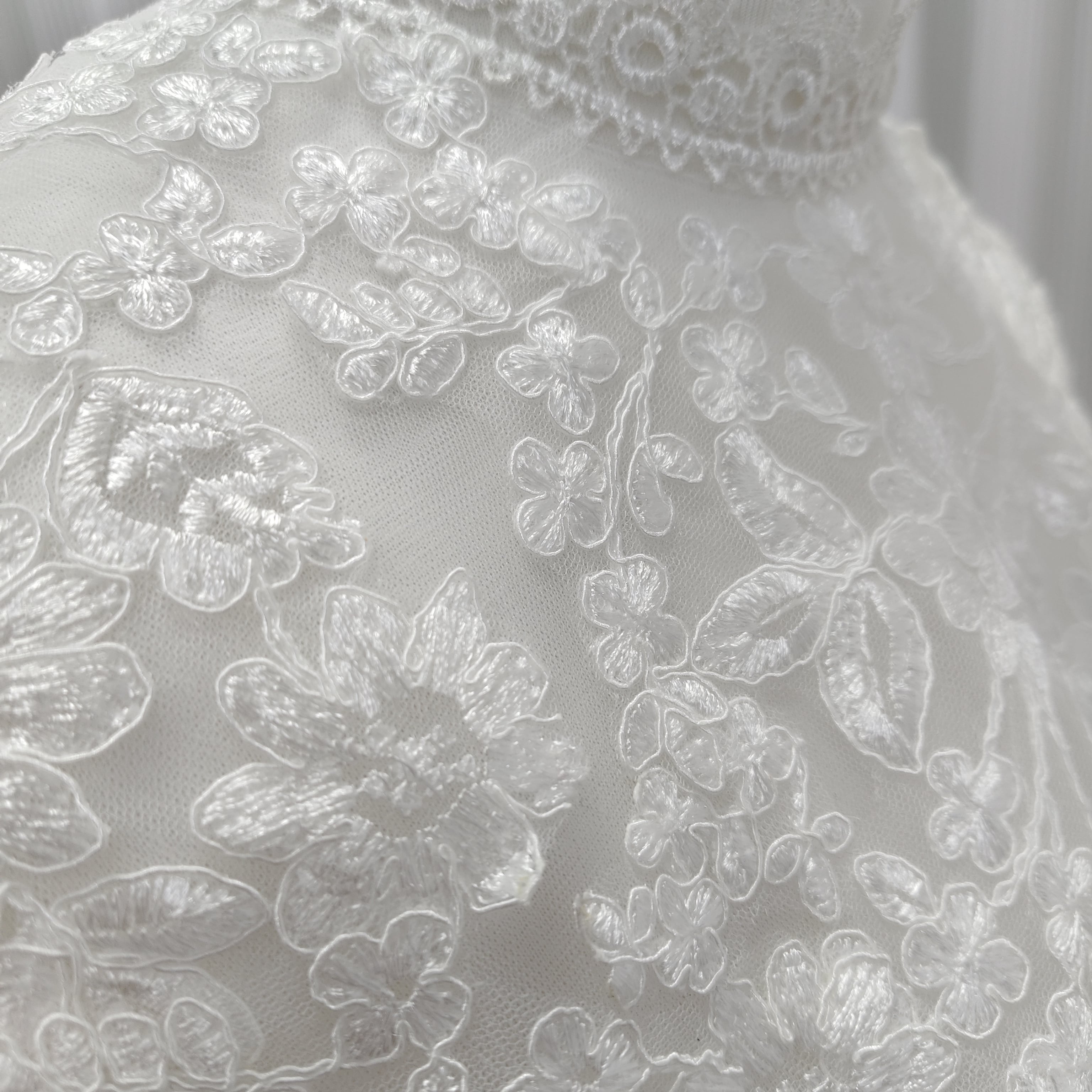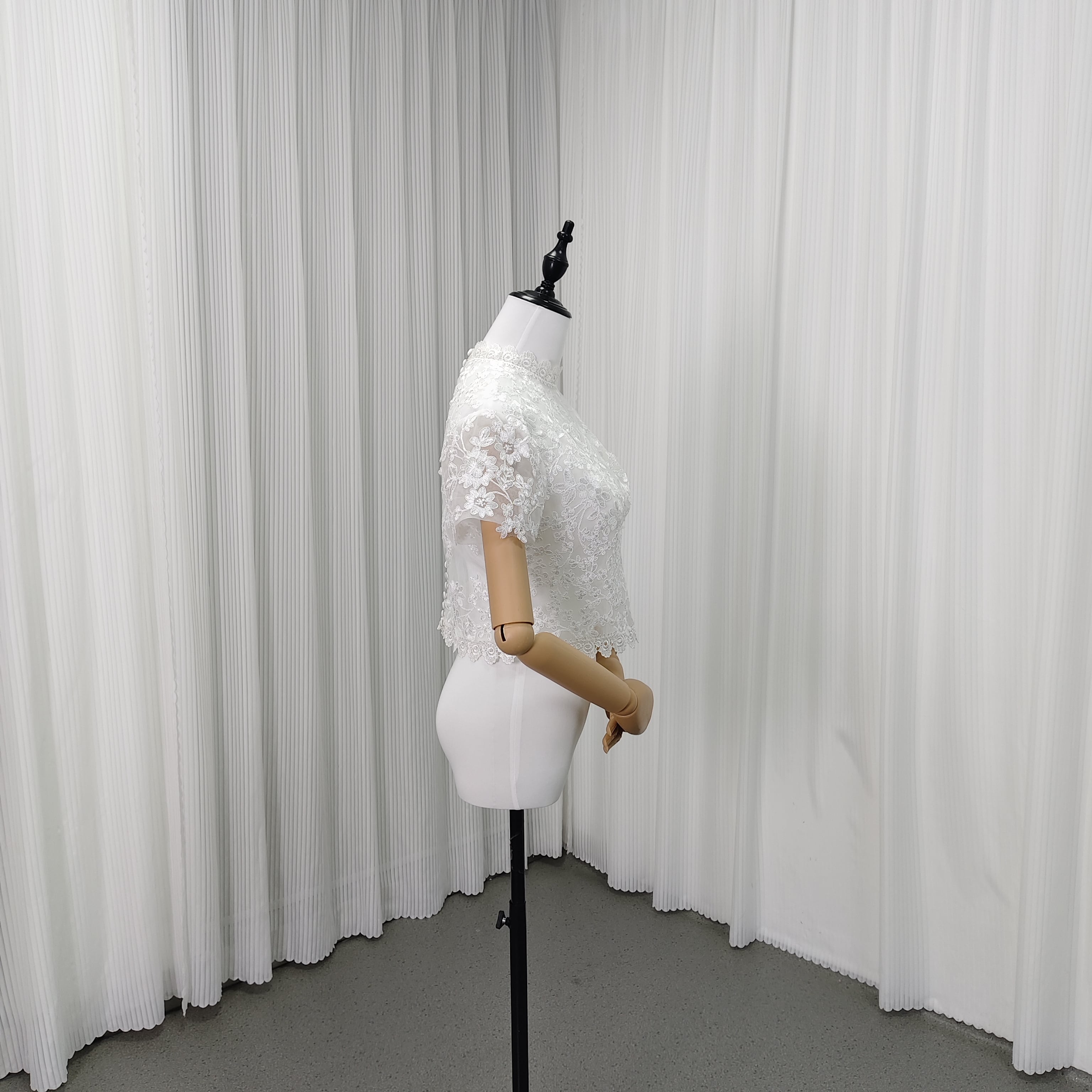 ボレロ 美しい花レース ハイネック 短袖 背中見せ くるみボタン エレガント 結婚式